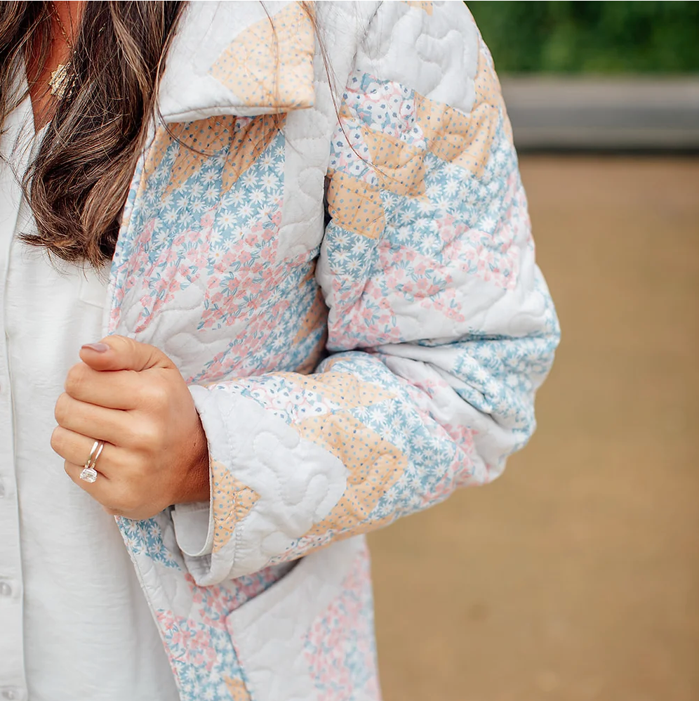 Our Quilted jackets are Comfy and cute! They pair just as well with a dress as it does with jeans or a pair of shorts.