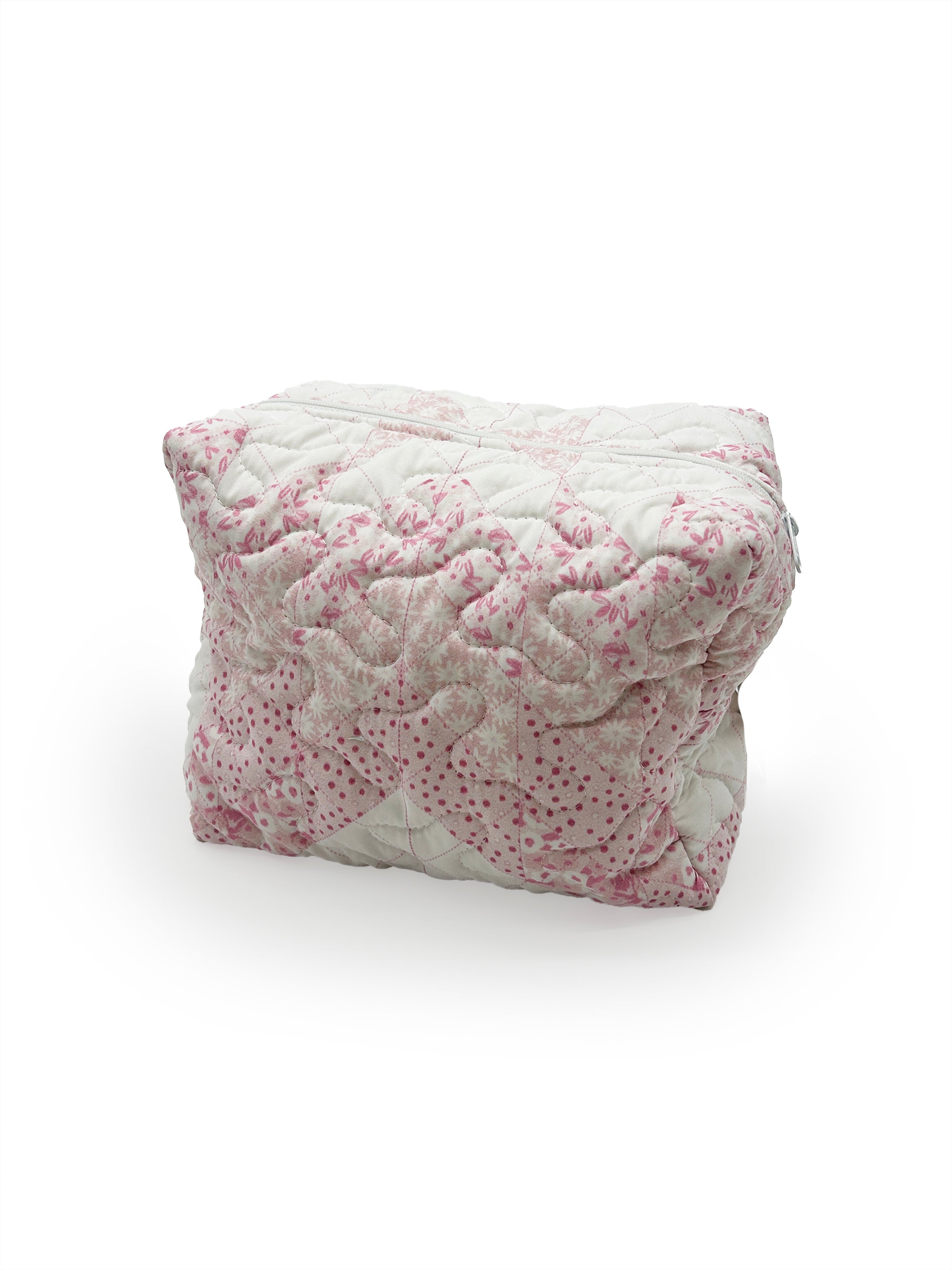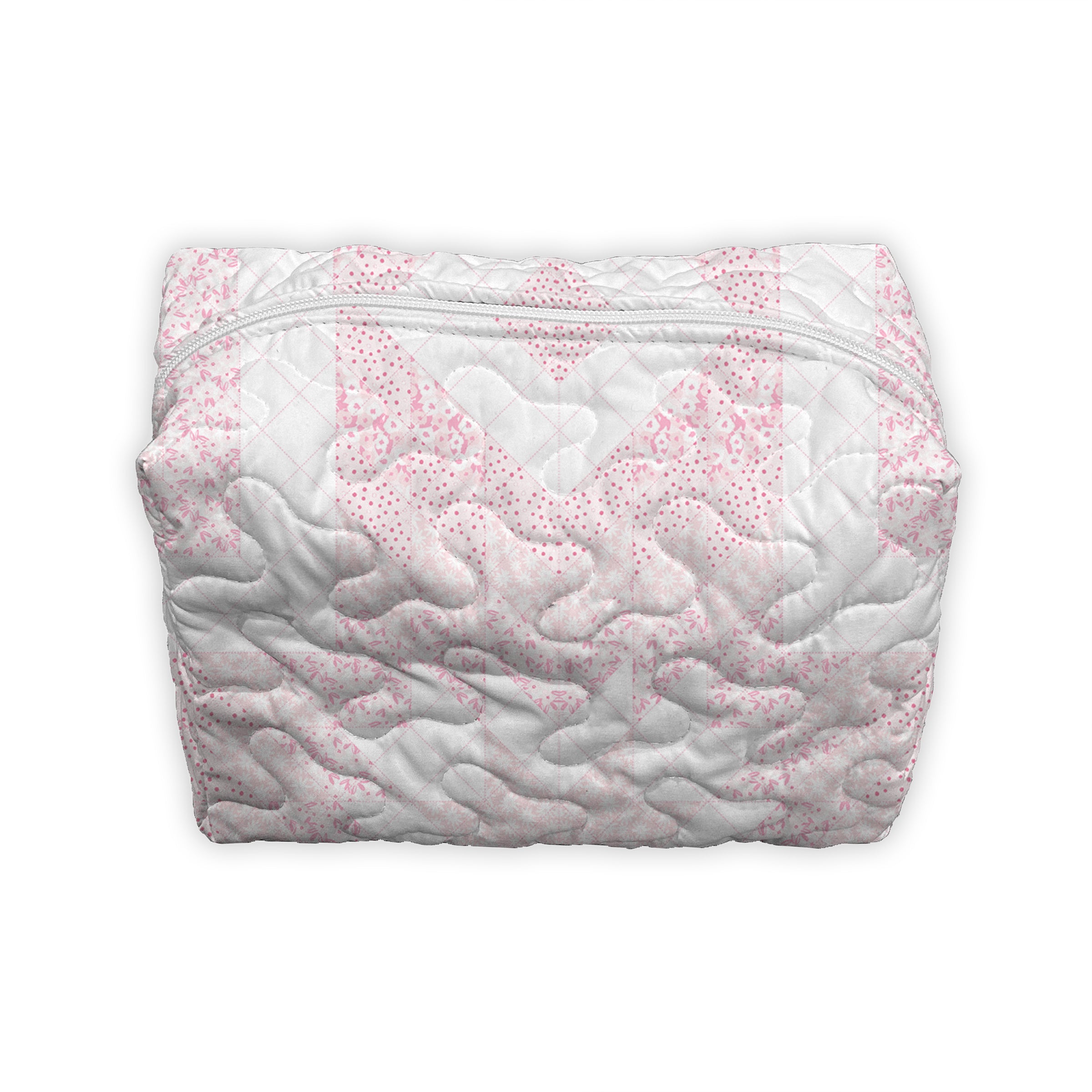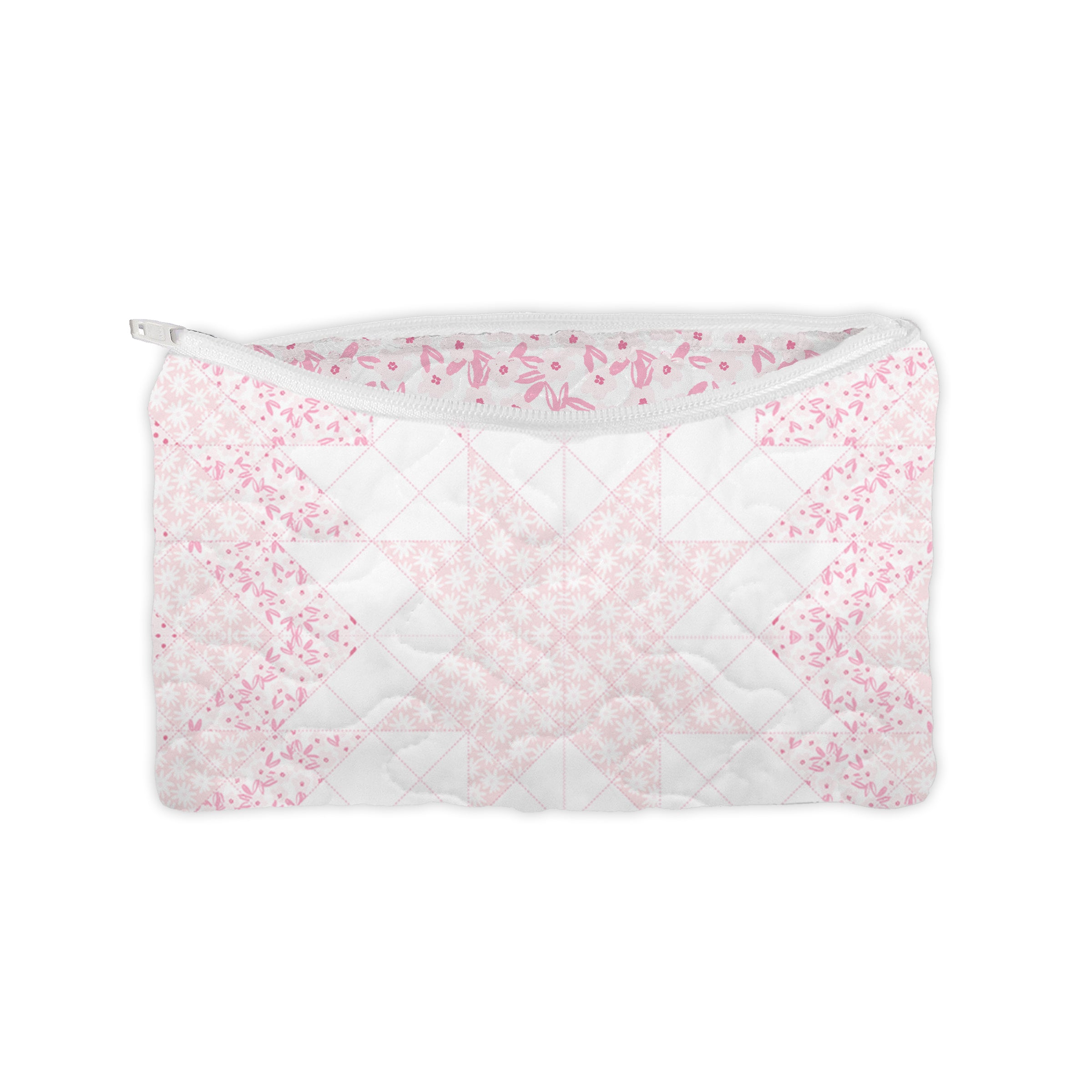 Adeline Patchwork Light Pink Quilted Makeup Bag