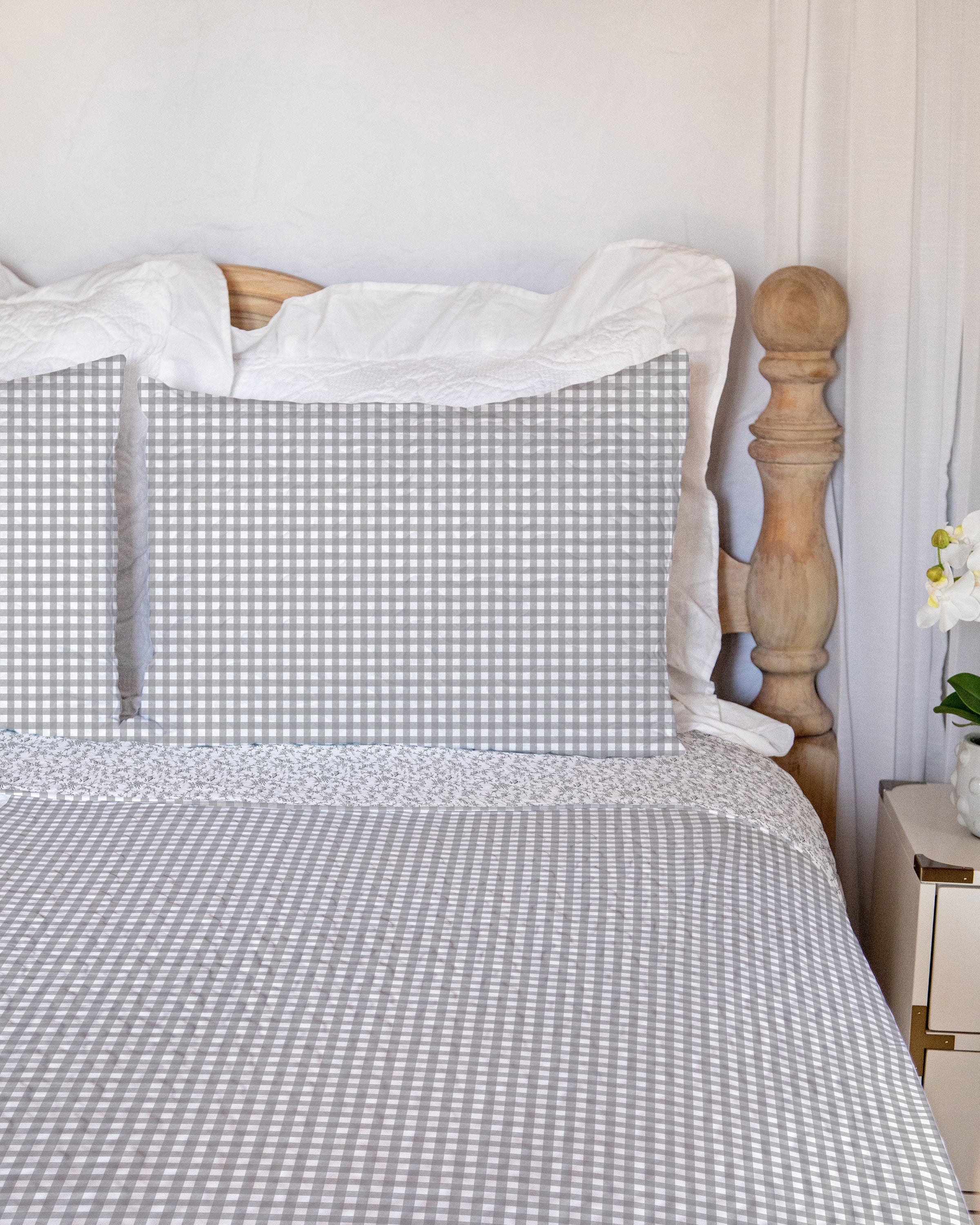 Anthia Gingham Grey Quilt