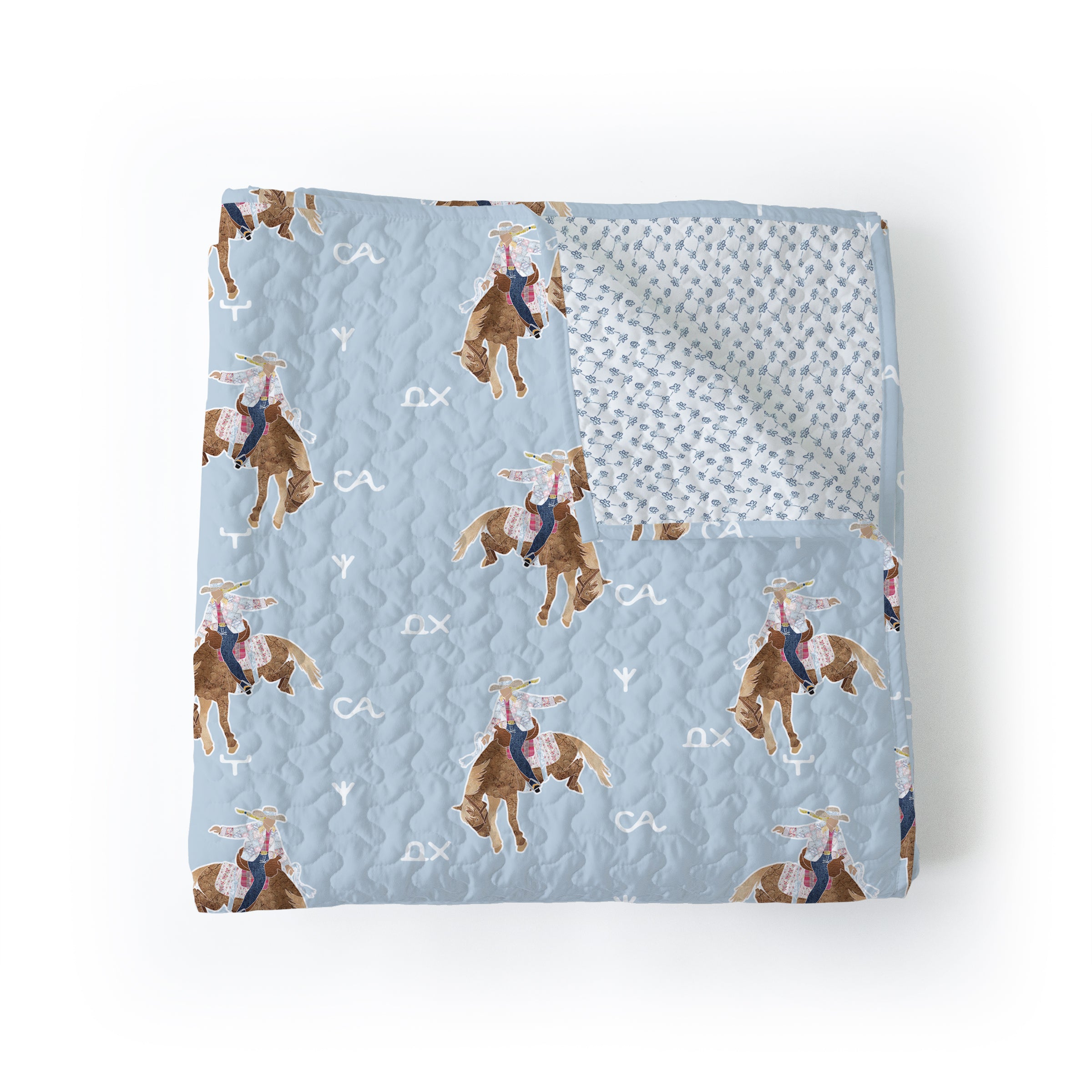 Casey Cowgirl Patchwork Blue Baby Blanket