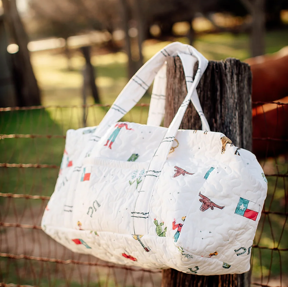 Discover the perfect blend of style and functionality with our Quilted Weekender Duffle Bag. Ideal for your weekend getaways or as a stylish gym bag, this spacious duffle is crafted with care and made to last. Available in a variety of vibrant colors and patterns, each bag is machine washable for easy care and proudly made in Texas. Whether you're jet-setting or heading to the gym, travel in style with Ida Mae Home's Quilted Weekender Duffle Bag.