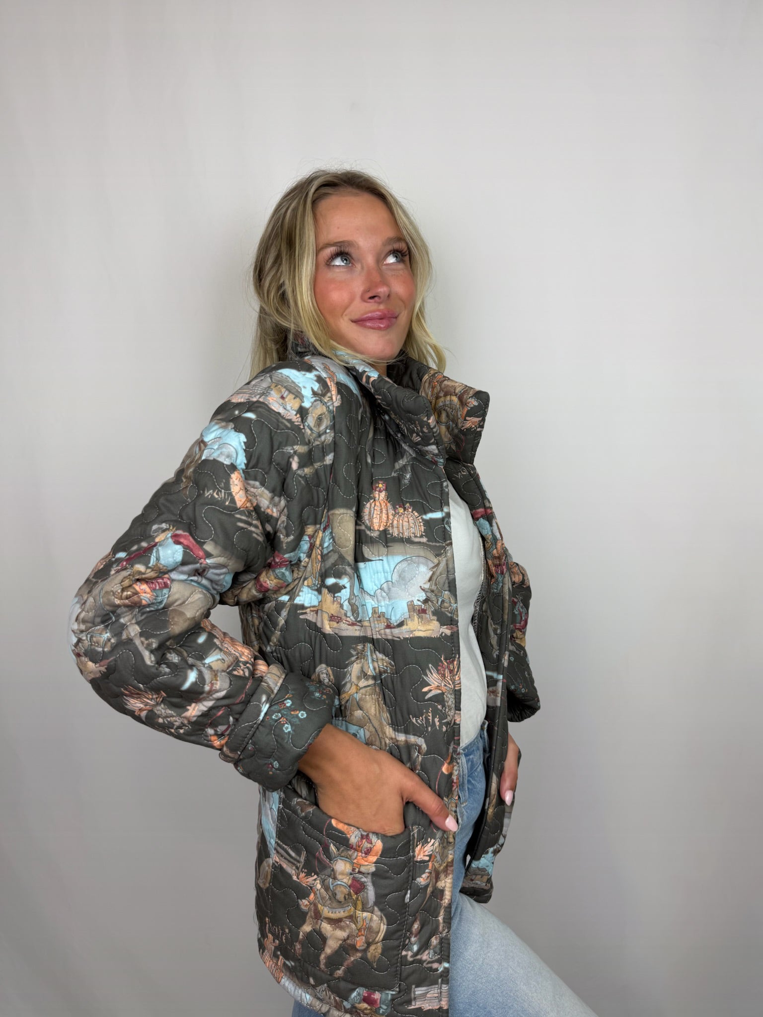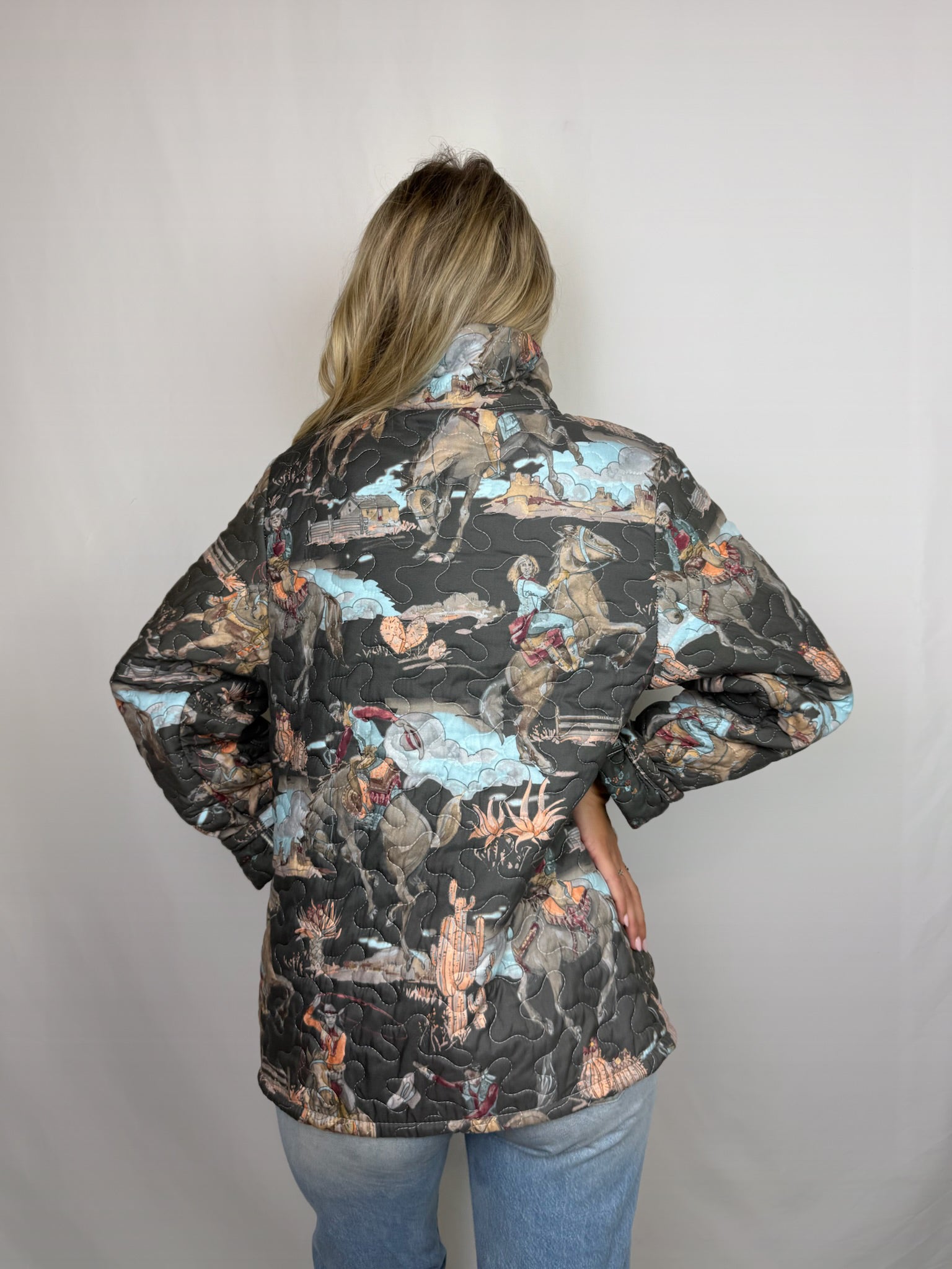 Our Quilted jackets are Comfy and cute! They pair just as well with a dress as it does with jeans or a pair of shorts.