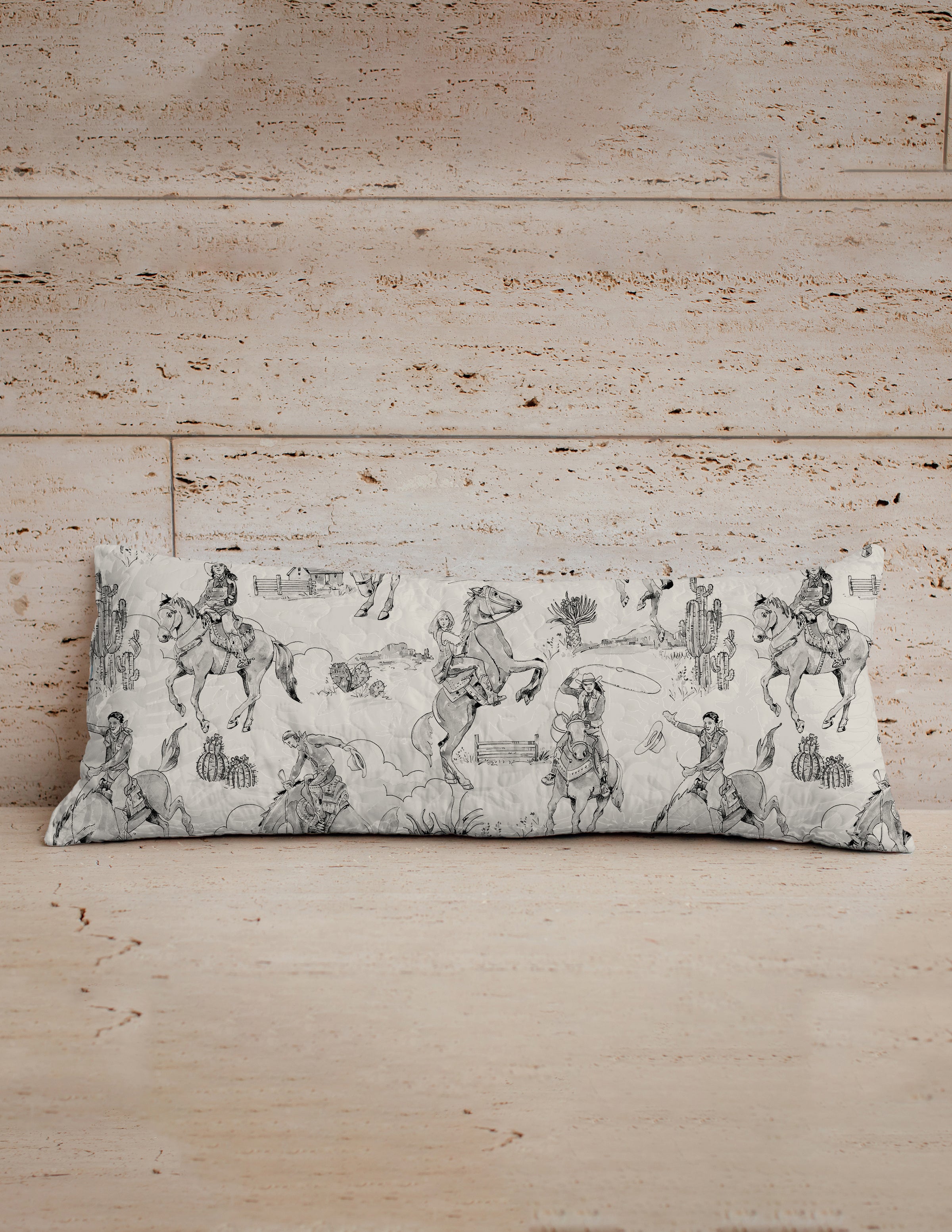 - Sandy beige background with a black Desert Cowboy Motif.