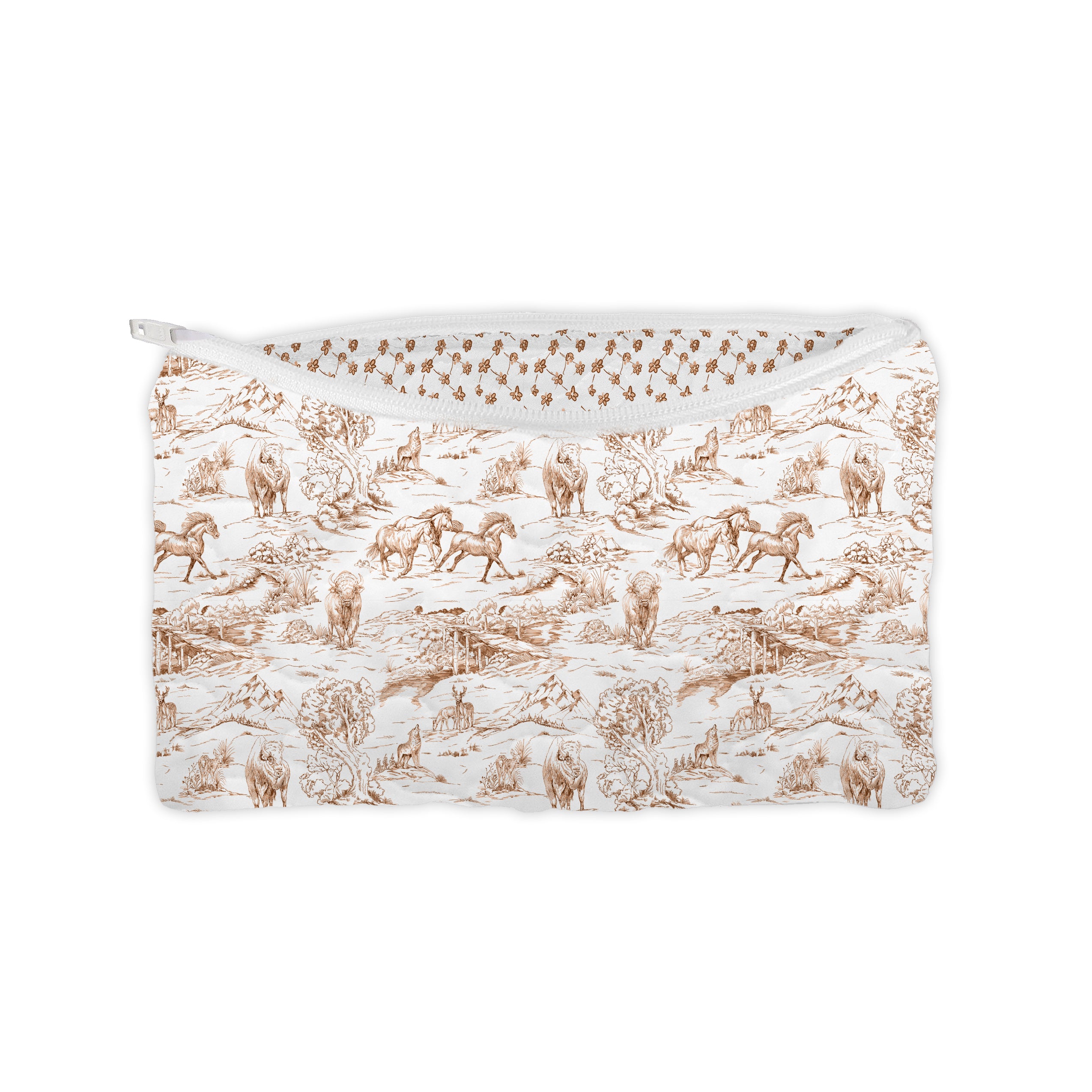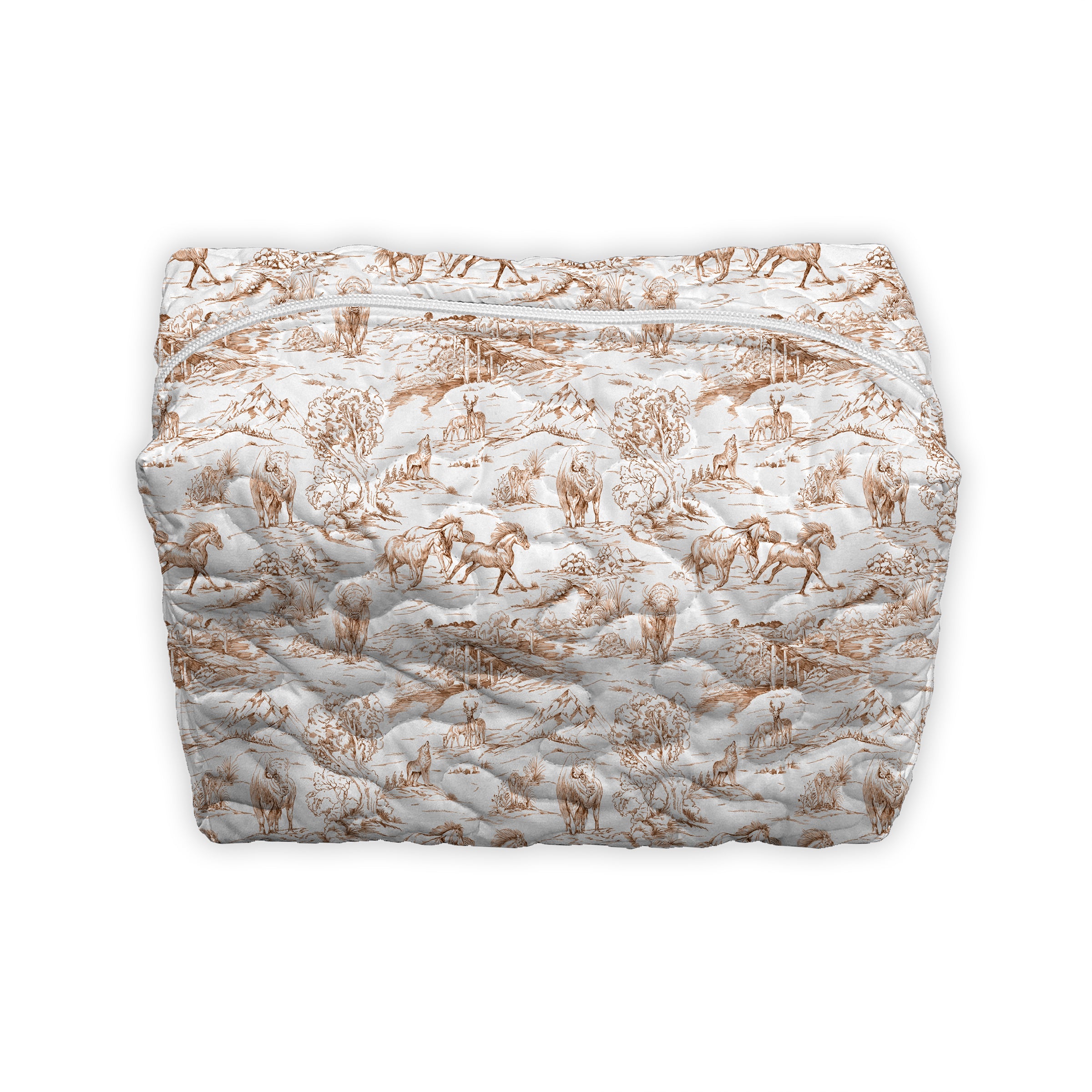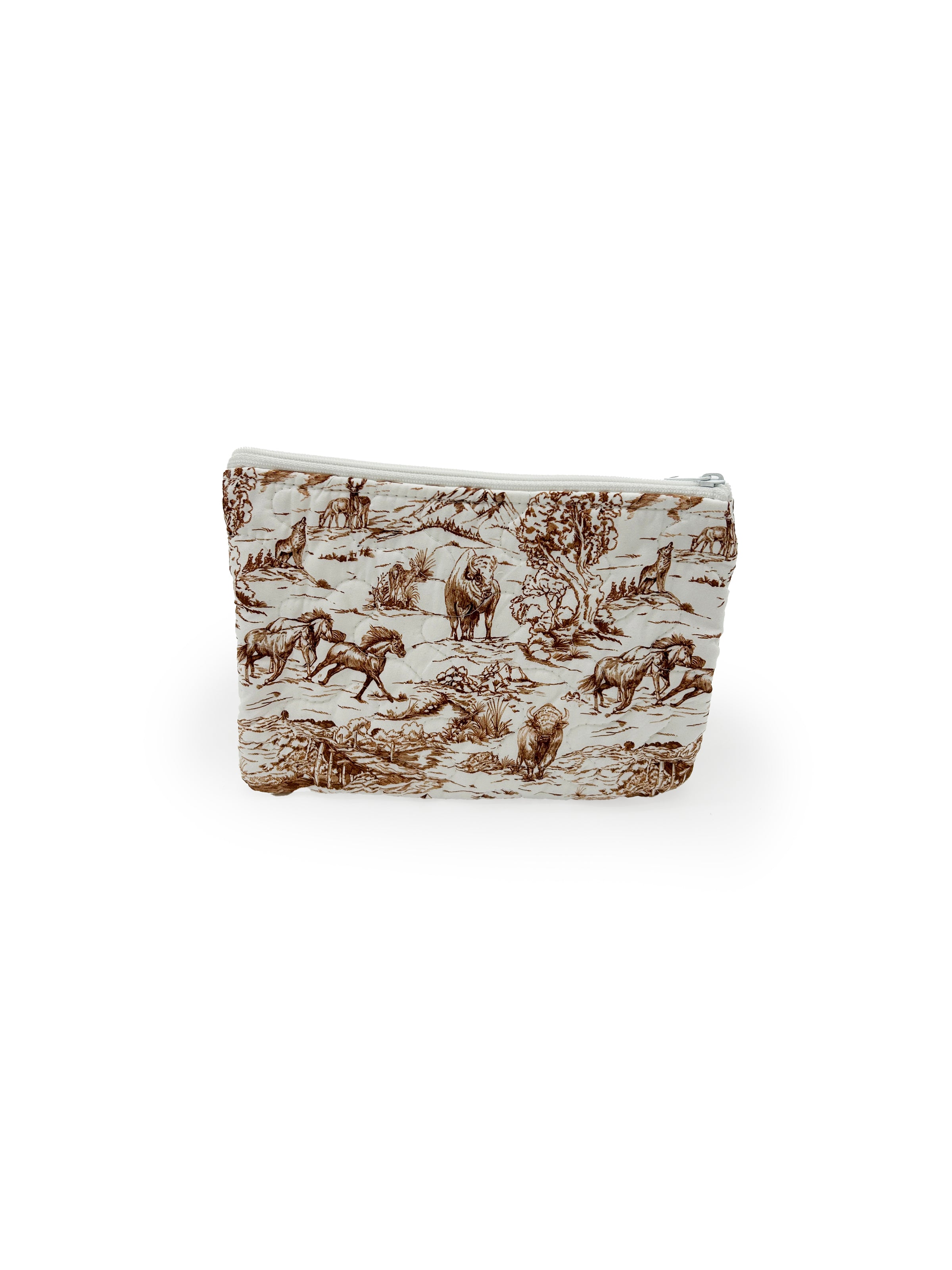 Buffalo Toile Brown Quilted Makeup Bag