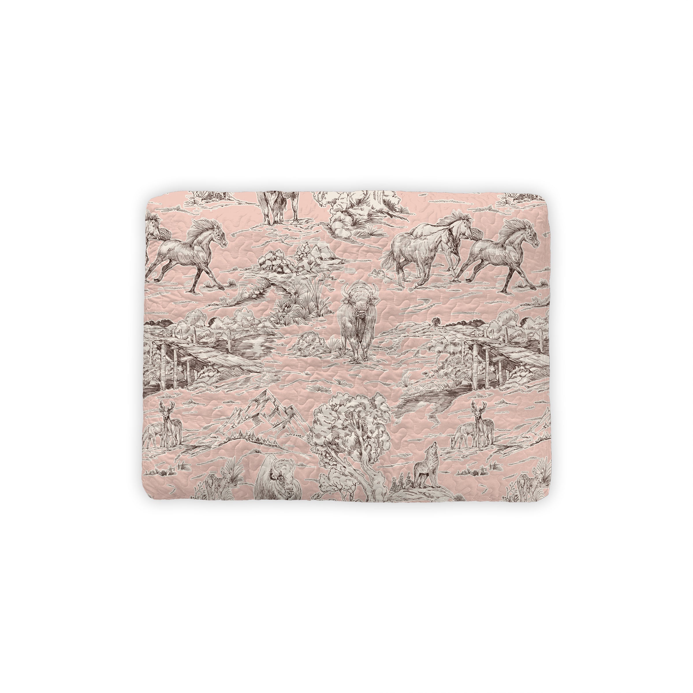 - Rose background with desert and buffalo toile.