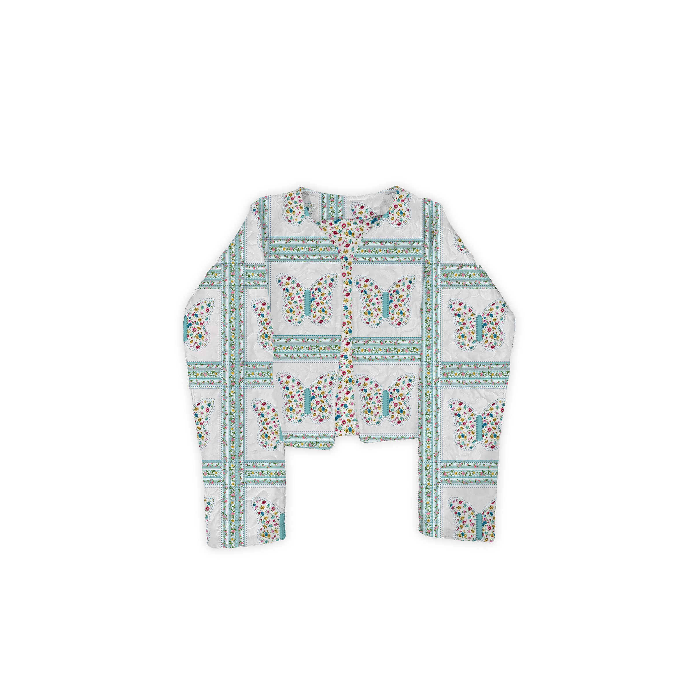 Butterfly Patchwork Turquoise Cropped Quilted Jacket