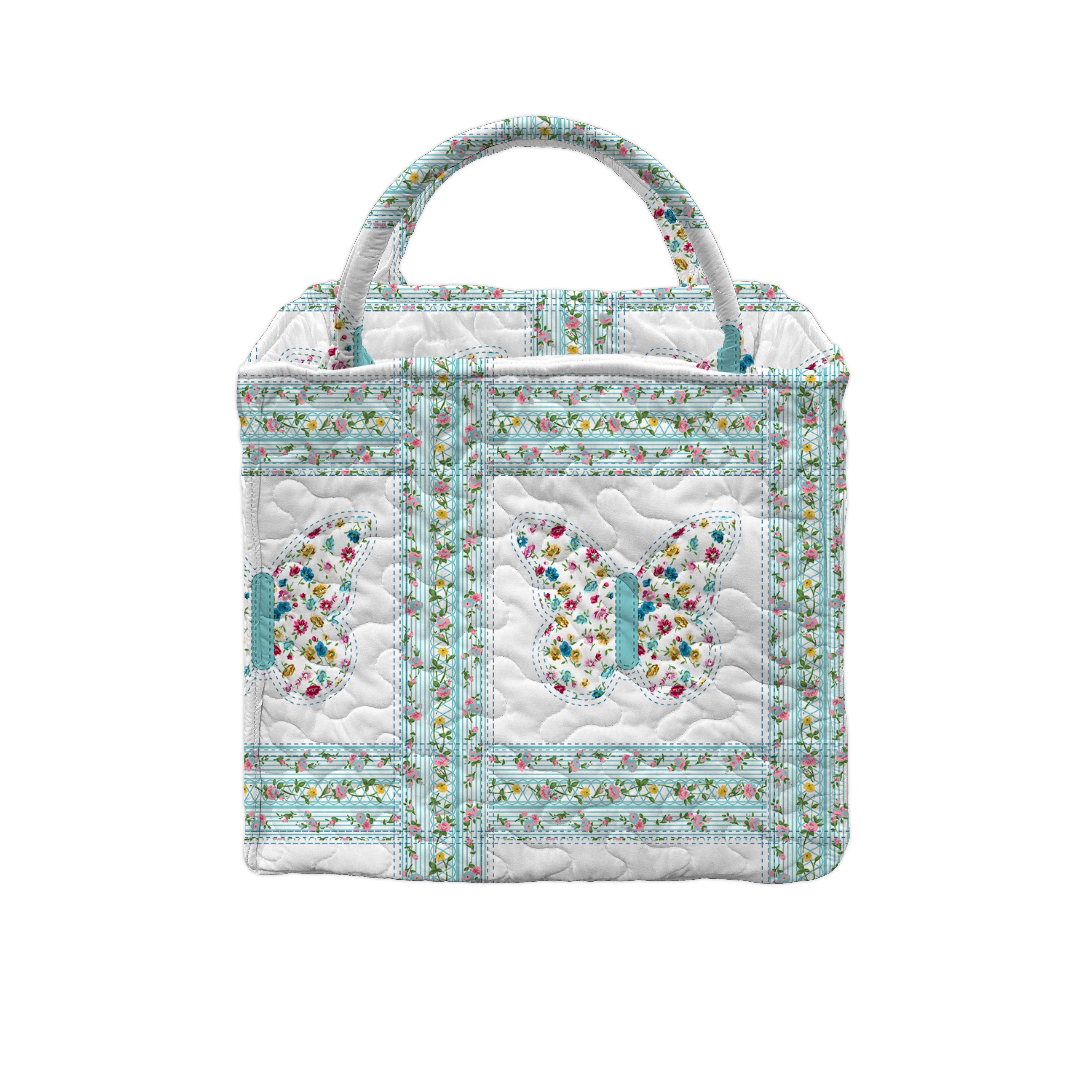 Butterfly Patchwork Turquoise Quilted Handbag