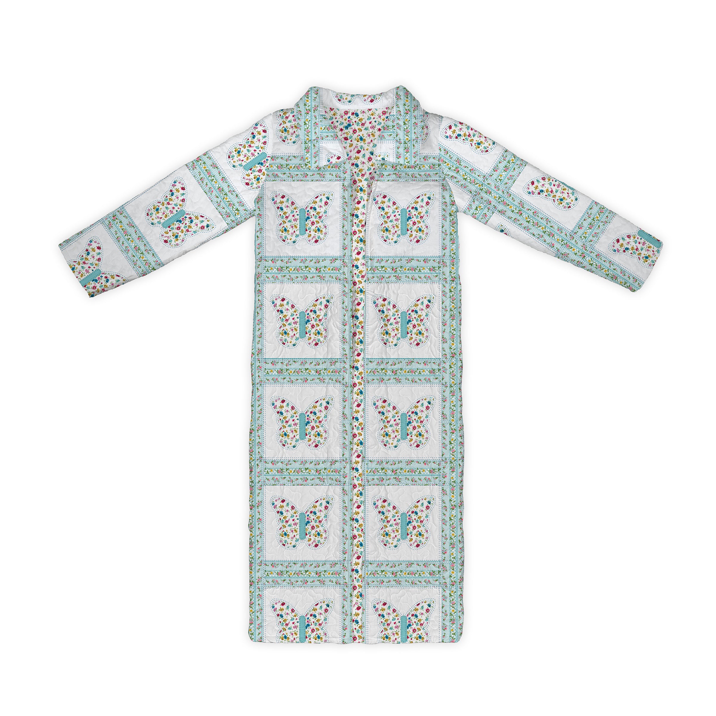 Butterfly Patchwork Turquoise Quilted Maxi Coat *Web Exclusive*