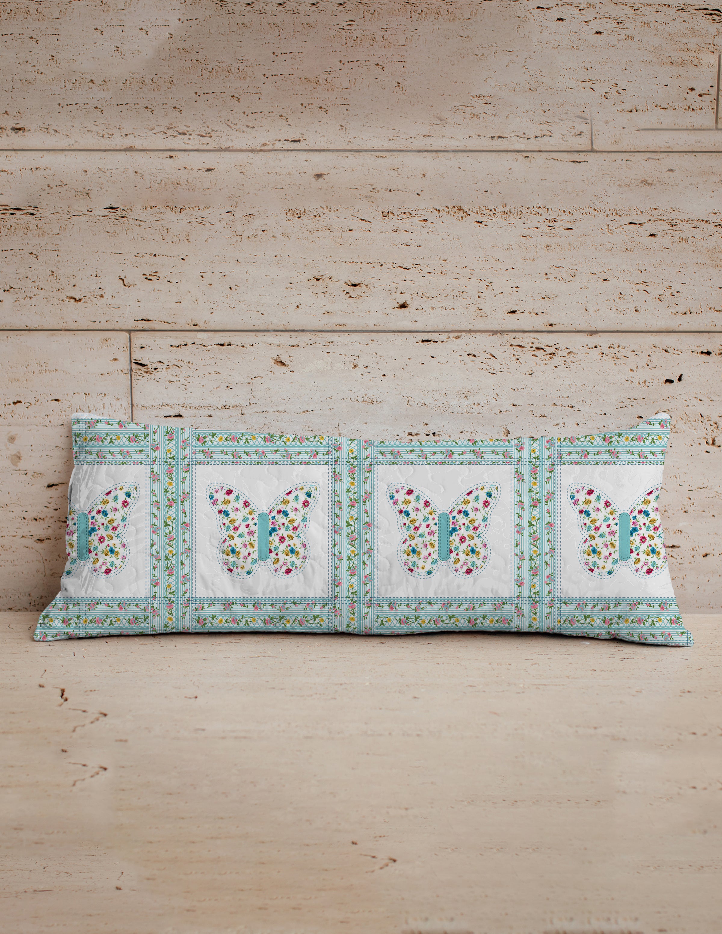 Butterfly Patchwork Turquoise Quilted Oblong 14" x33" Pillow