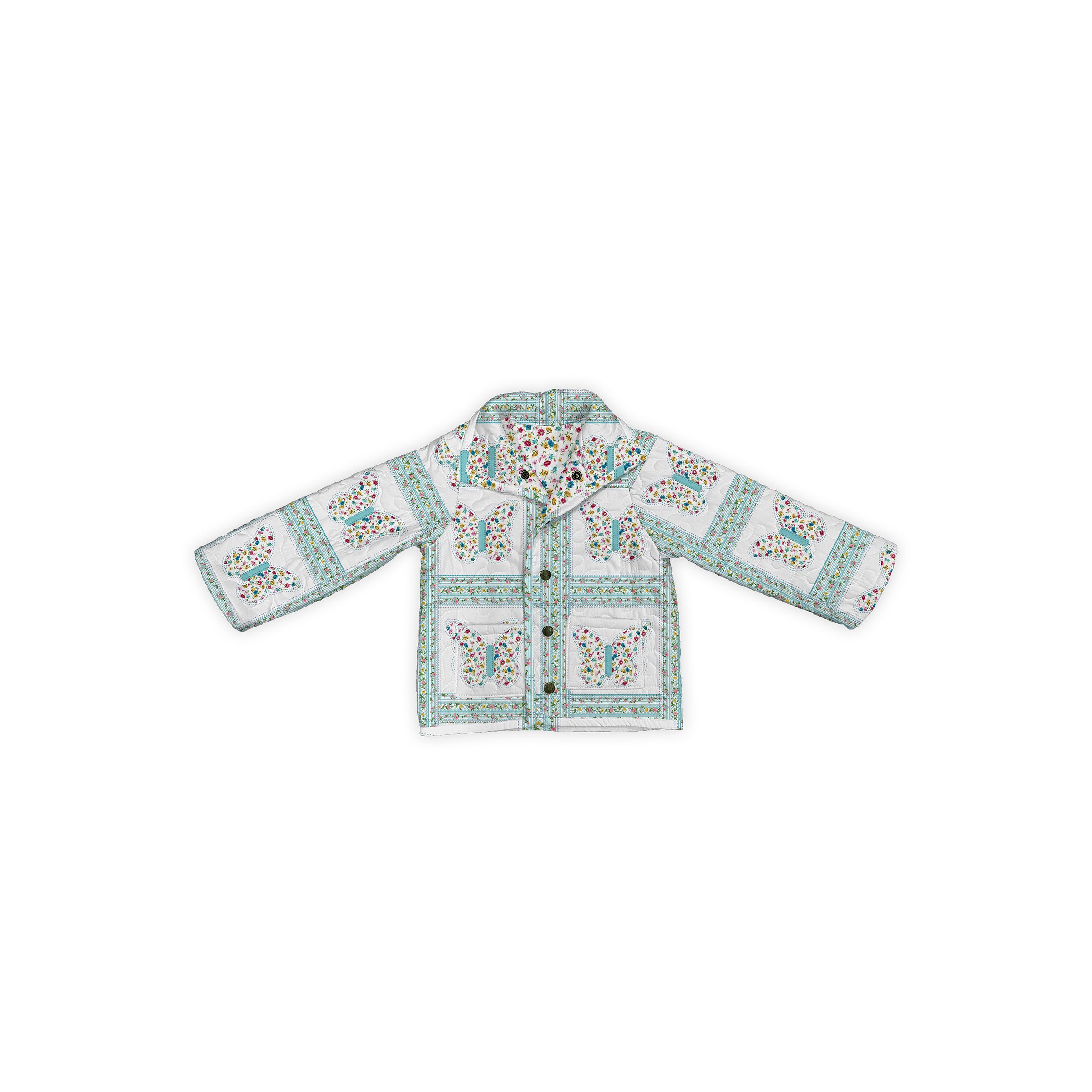 Butterfly Patchwork Turquoise Youth Quilted Snap Jacket