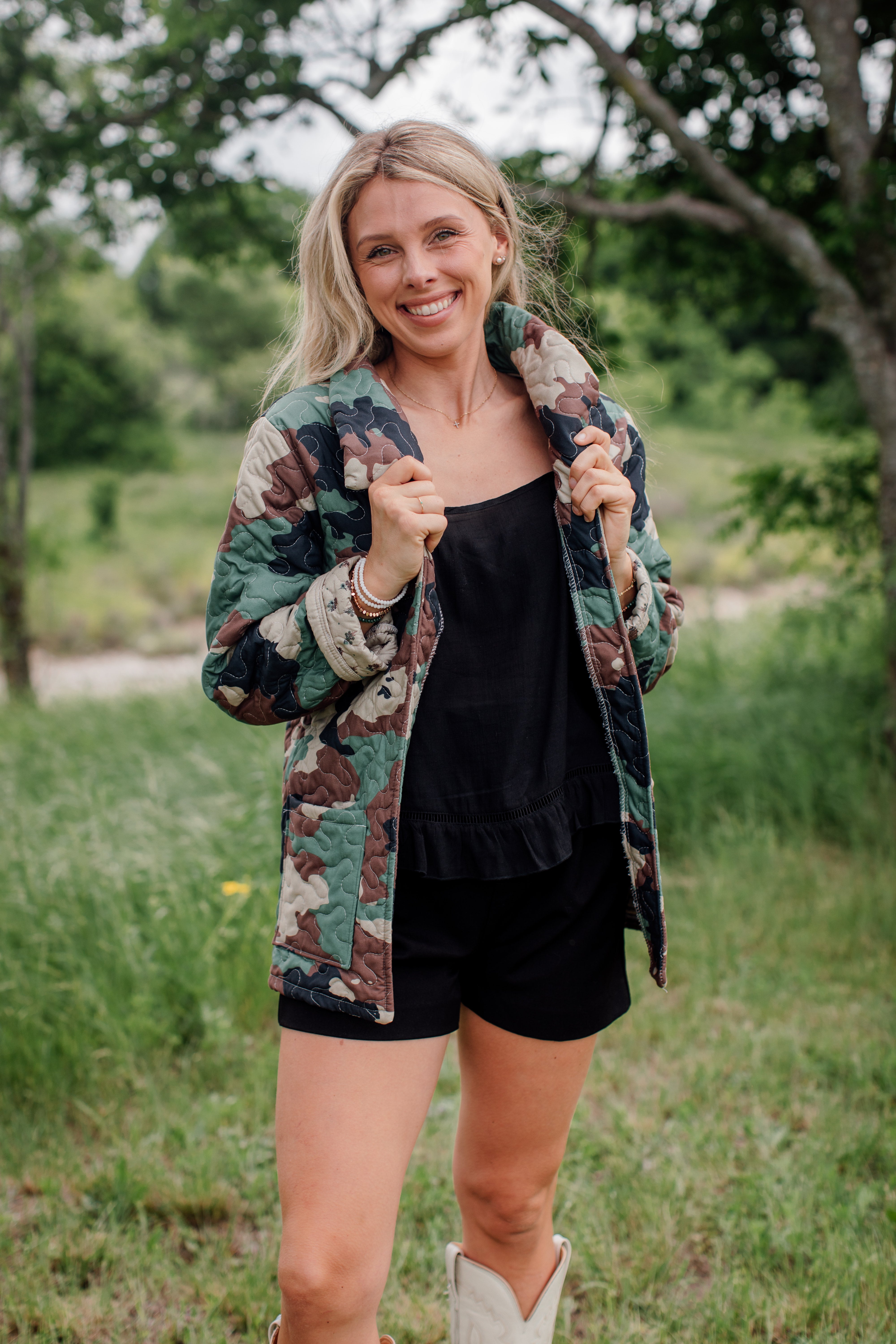 Our Quilted jackets are Comfy and cute! They pair just as well with a dress as it does with jeans or a pair of shorts.