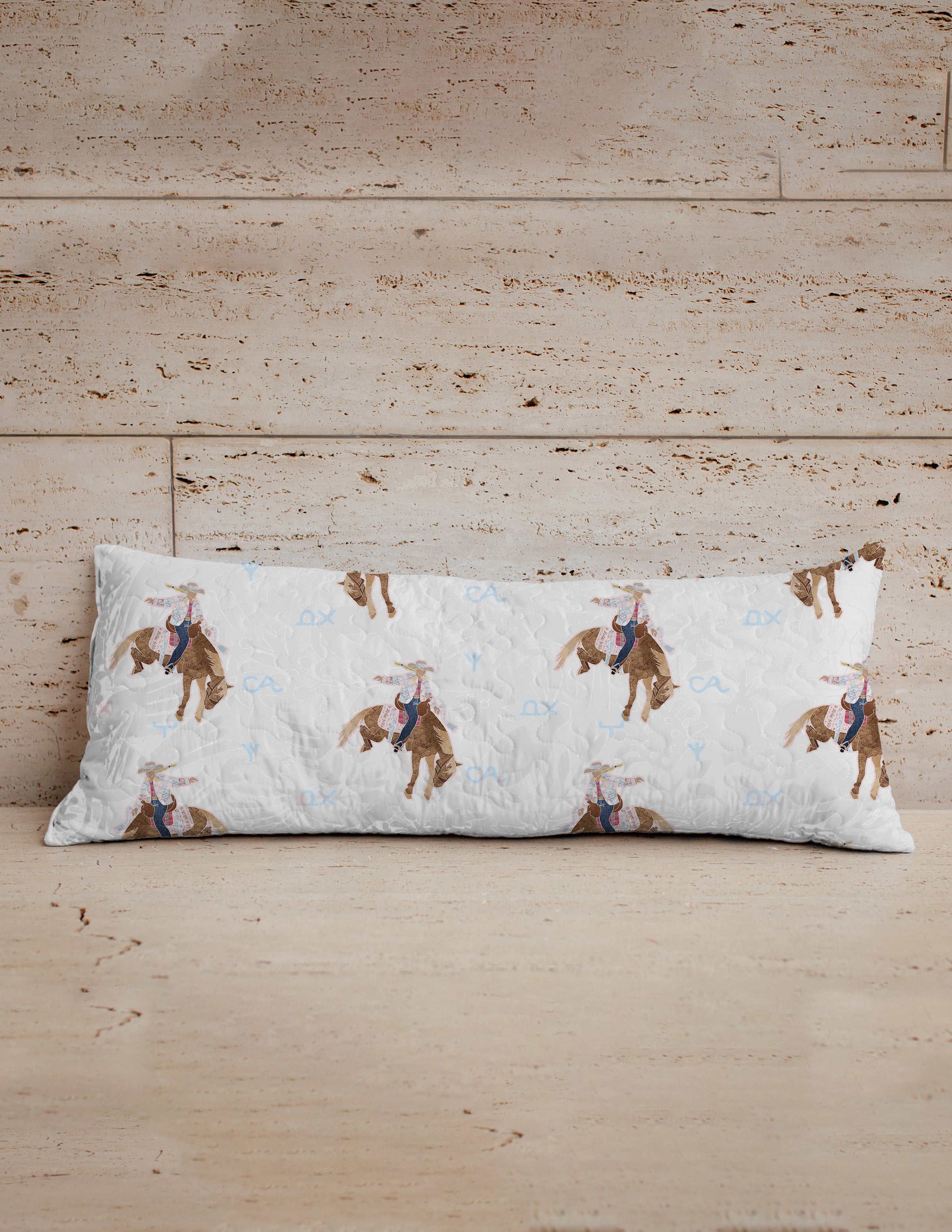 Casey Cowgirl Patchwork White Quilted Oblong 14"x33" Pillow