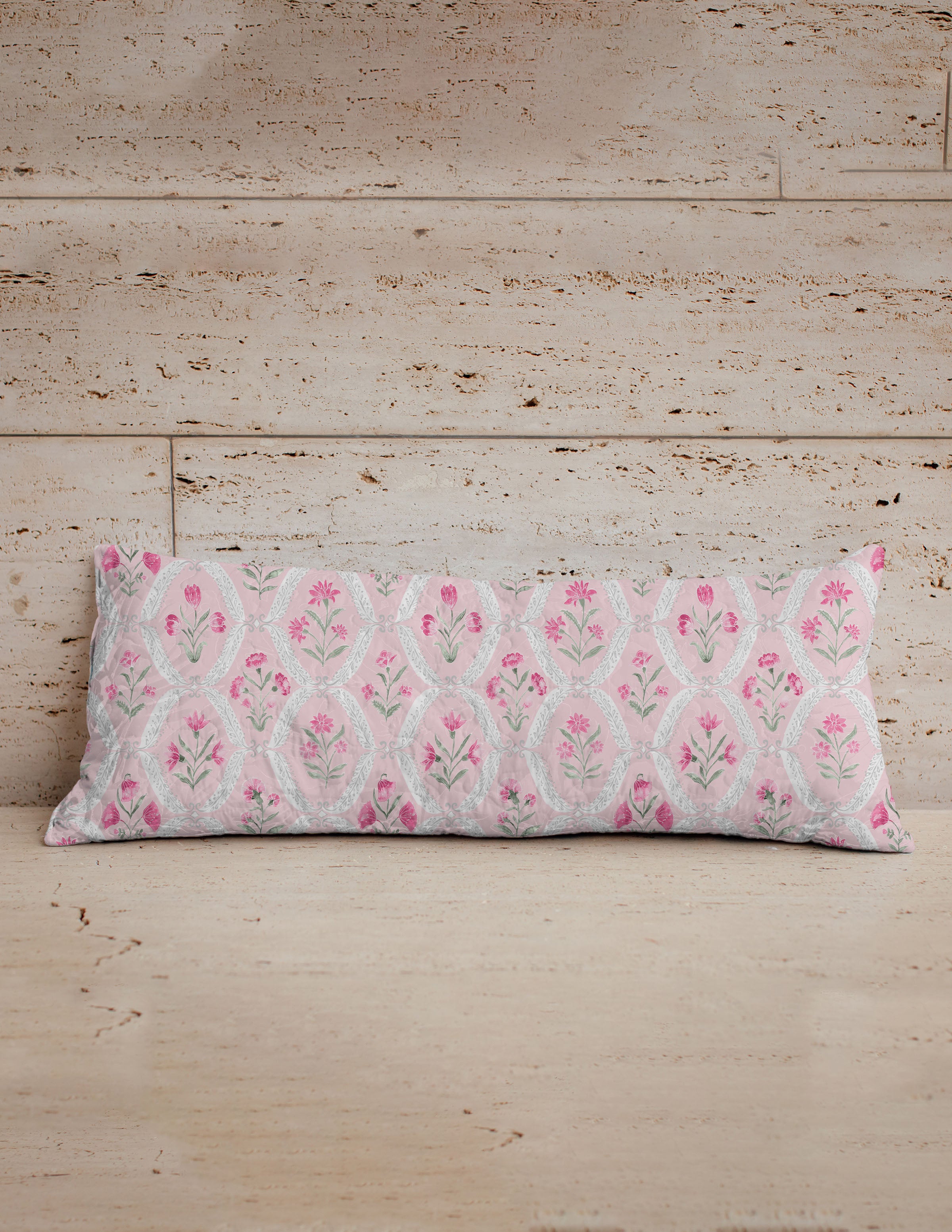 Charlotte Pink Quilted Oblong 14" x33" Pillow