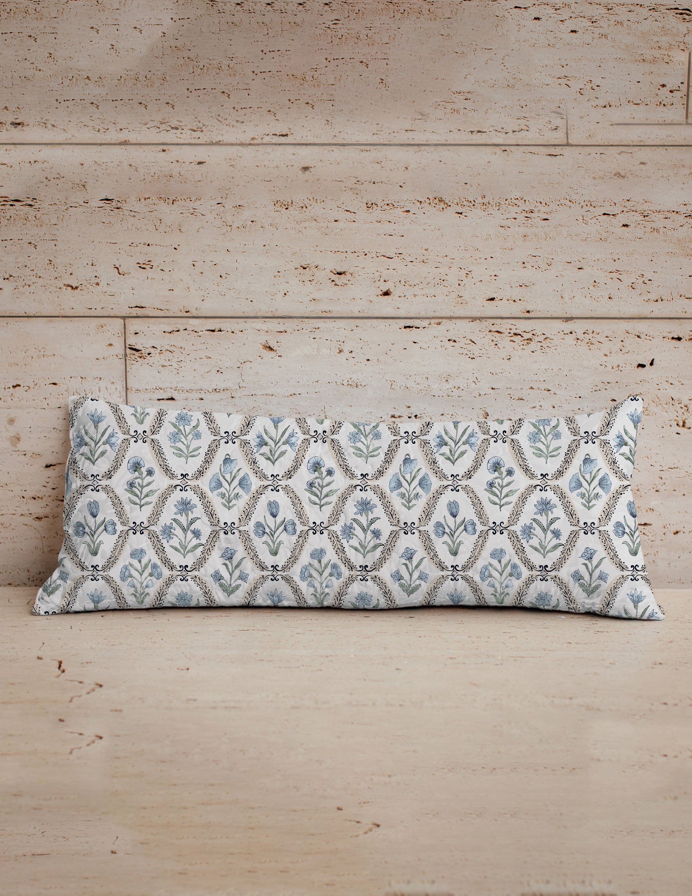 Charlotte White / Blue Quilted Oblong 14" x33" Pillow