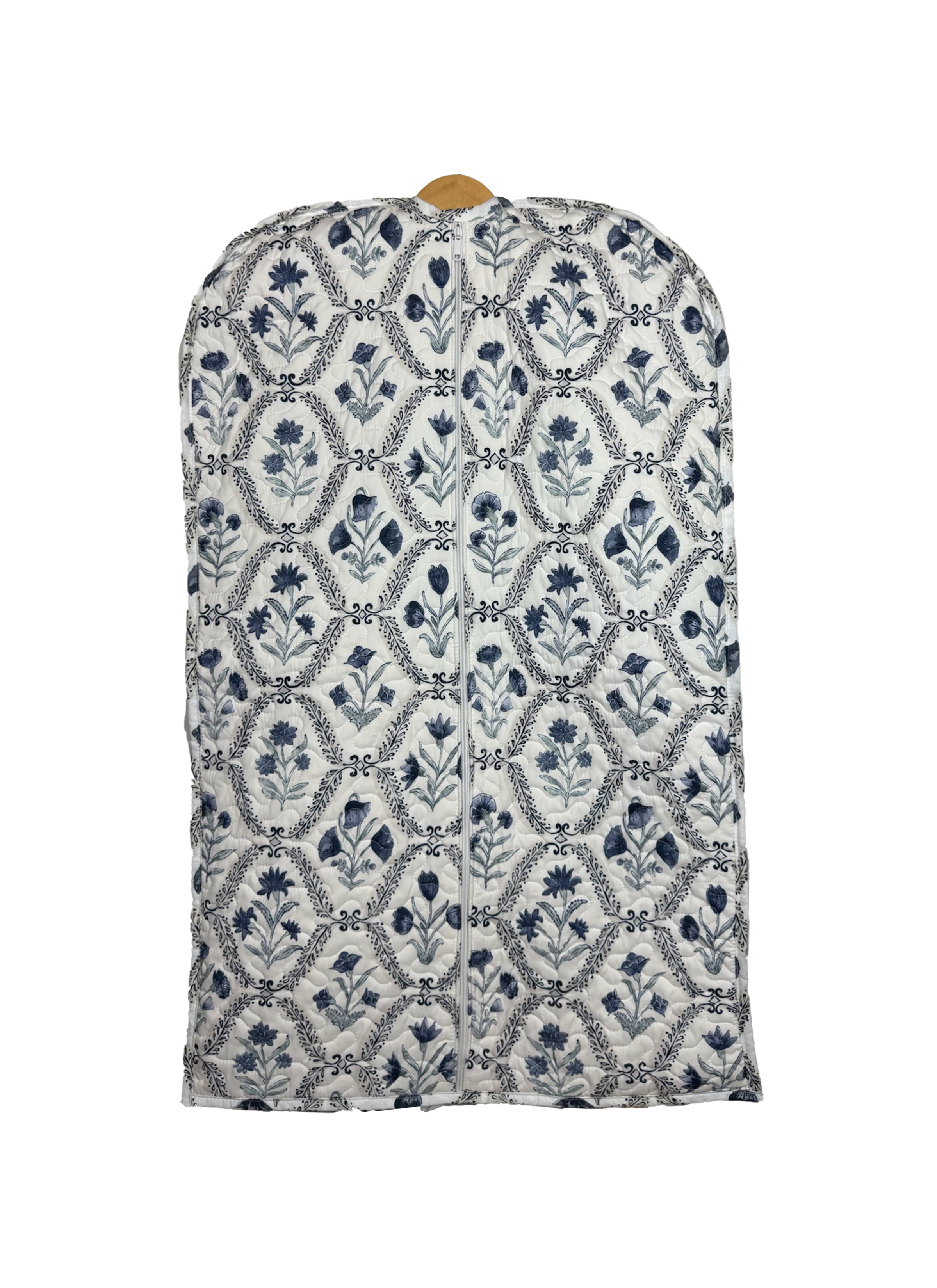 Charlotte White/Navy Quilted Garment Bag
