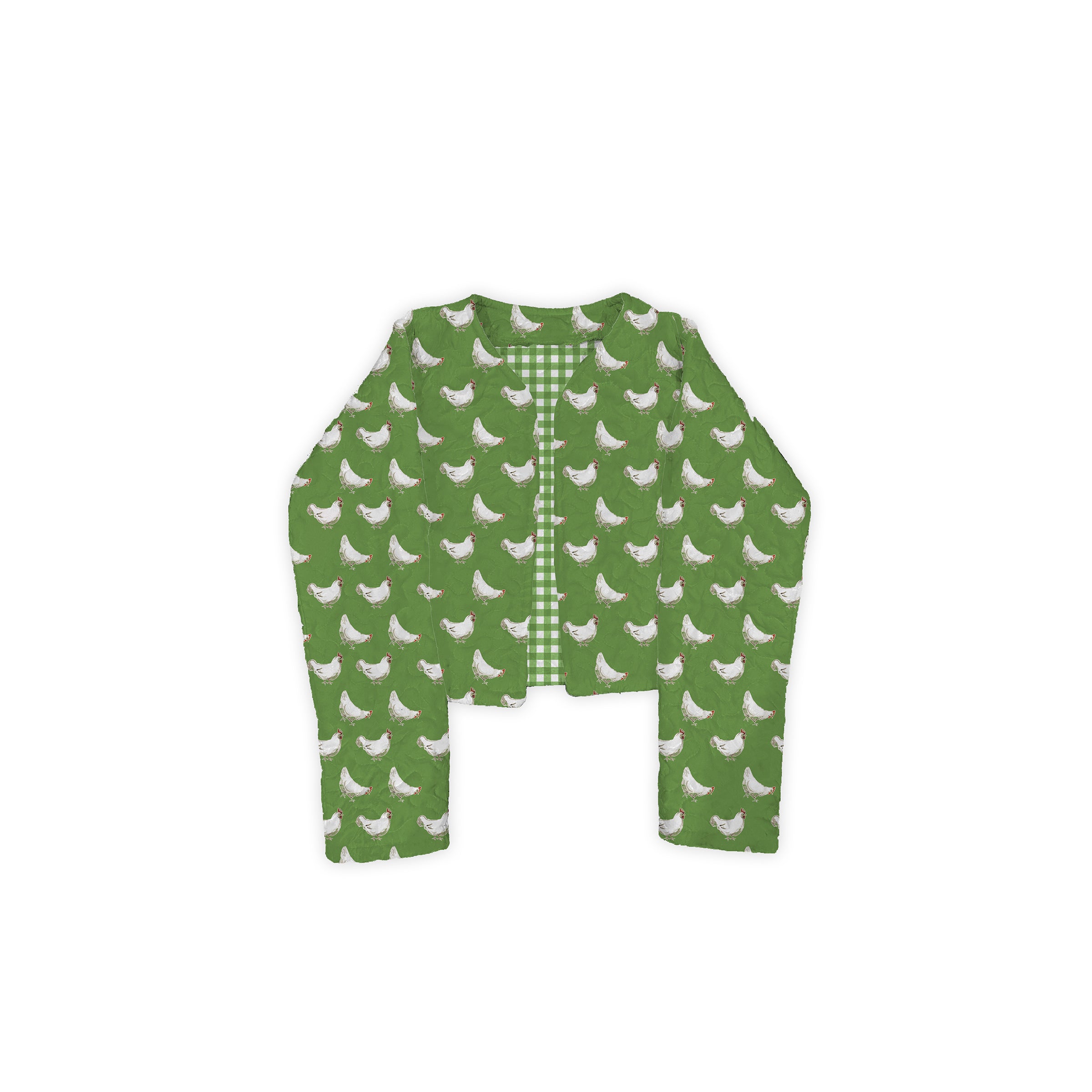 Chicken Icon Green Cropped Quilted Jacket
