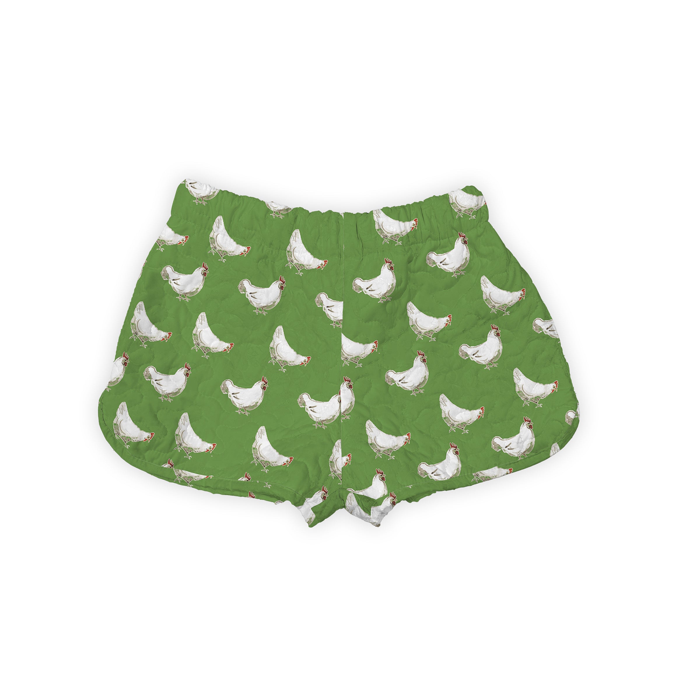 Chicken Icon Green Quilted Scallop Shorts *Web Exclusive*