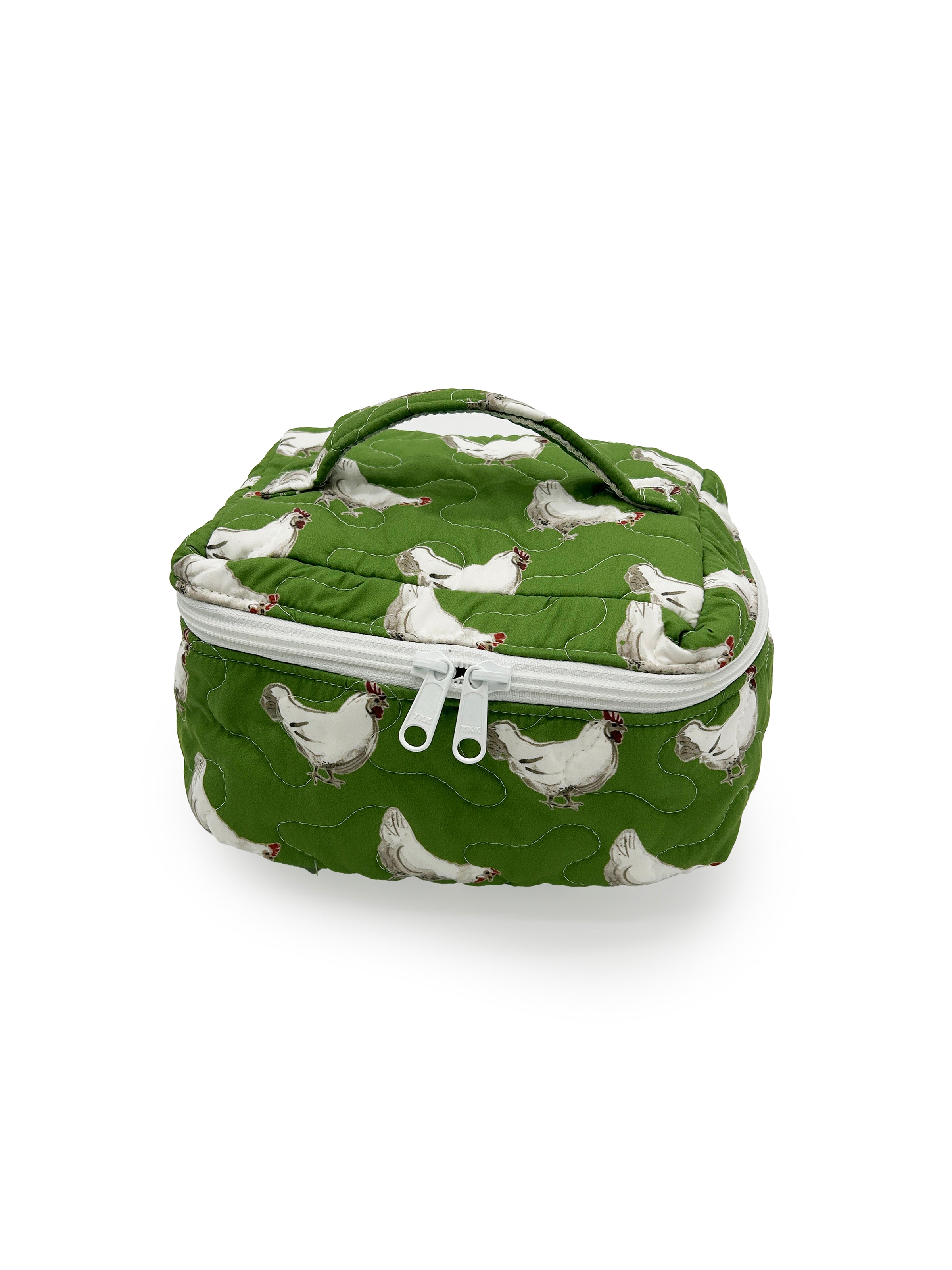 The Chicken Icon Green Quilted Travel Case is functionally and thoughtfully designed to keep your essentials organized on the go. This travel bag has a soft quilted exterior, a secure zip closure, and a convenient top handle, it’s ideal for storing makeup, toiletries, tech accessories, or anything you need within easy reach. Machine washable, too, so you don’t have to fuss none, just a little care, and it’ll last you for years.