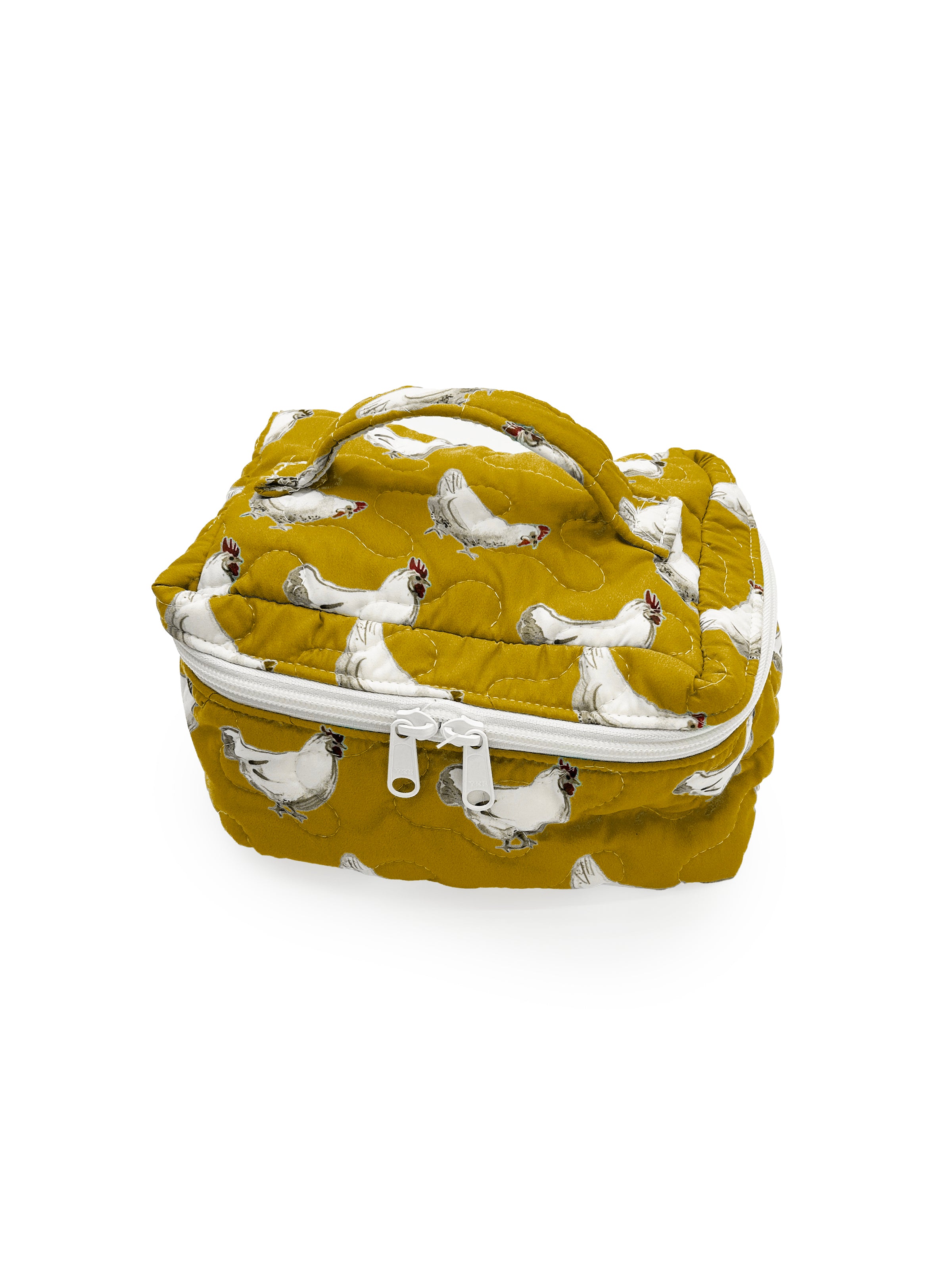 The Chicken Icon Mustard Quilted Travel Case is functionally and thoughtfully designed to keep your essentials organized on the go. This travel bag has a soft quilted exterior, a secure zip closure, and a convenient top handle, it’s ideal for storing makeup, toiletries, tech accessories, or anything you need within easy reach. Machine washable, too, so you don’t have to fuss none, just a little care, and it’ll last you for years.