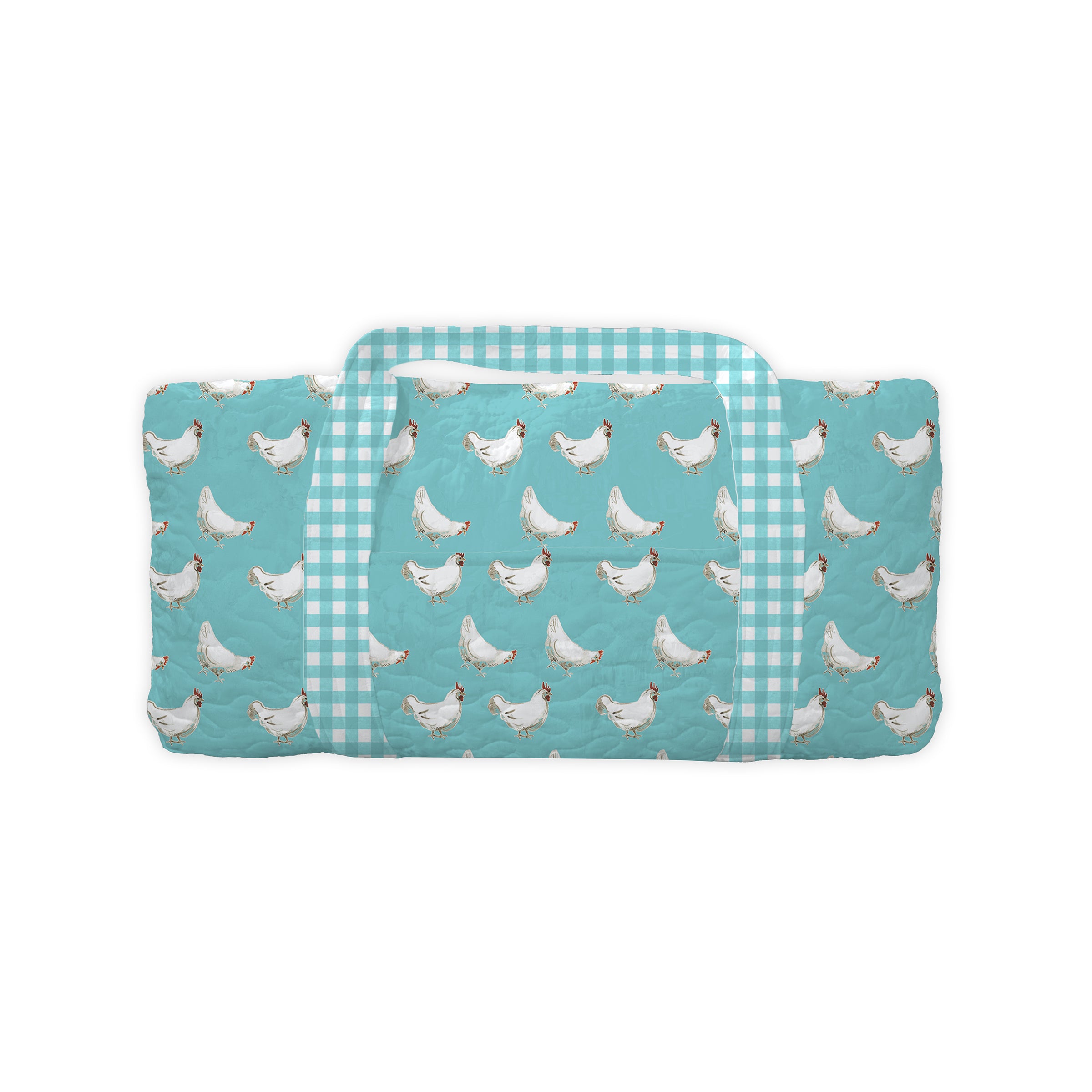 Chicken Icon Turquoise Quilted Weekender Duffle Bag