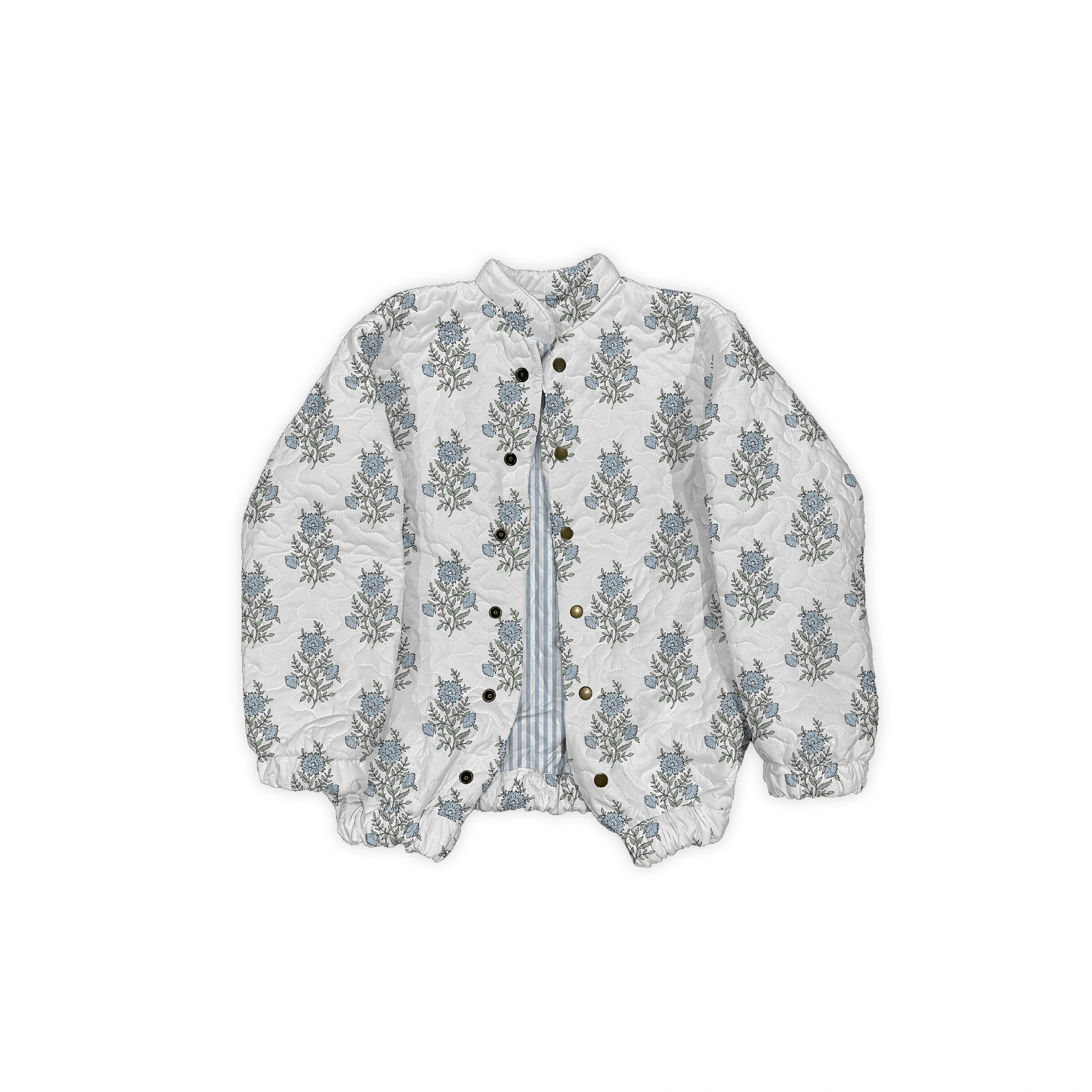 Claire Floral Blue Quilted Bomber Jacket *Web Exclusive*