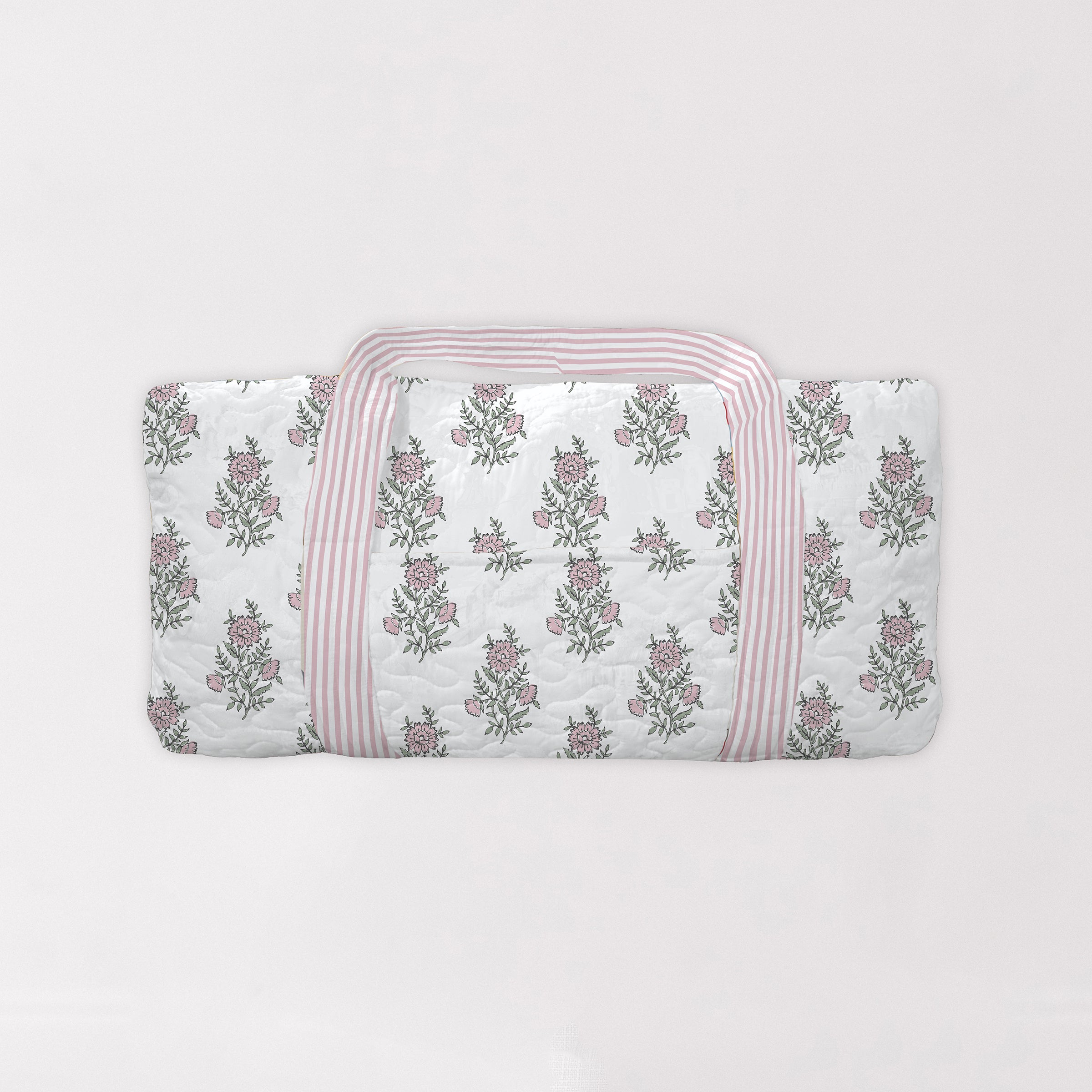 Discover the perfect blend of style and functionality with our Quilted Weekender Duffle Bag. Ideal for your weekend getaways or as a stylish gym bag, this spacious duffle is crafted with care and made to last. Available in a variety of vibrant colors and patterns, each bag is machine washable for easy care and proudly made in Texas. Whether you're jet-setting or heading to the gym, travel in style with Ida Mae Home's Quilted Weekender Duffle Bag.