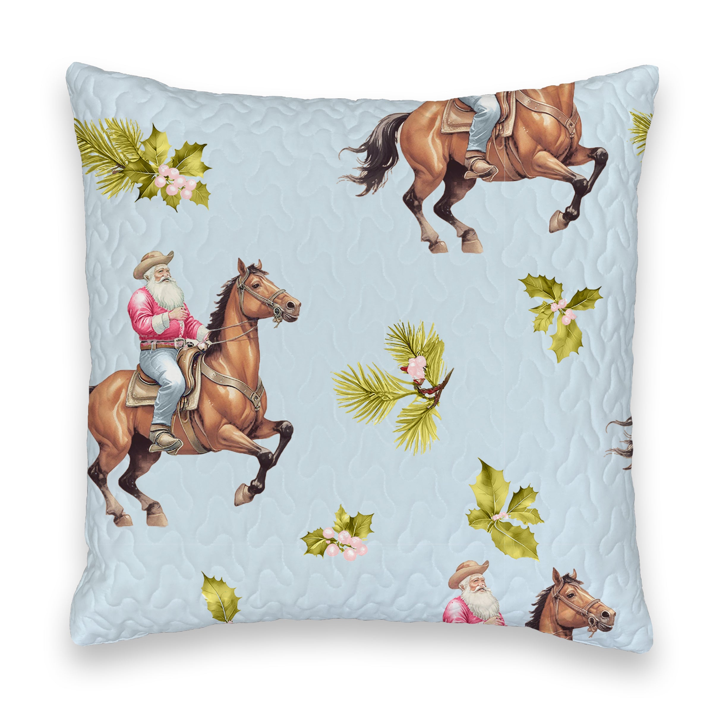 Cowboy Christmas Blue Quilted 20" Pillow