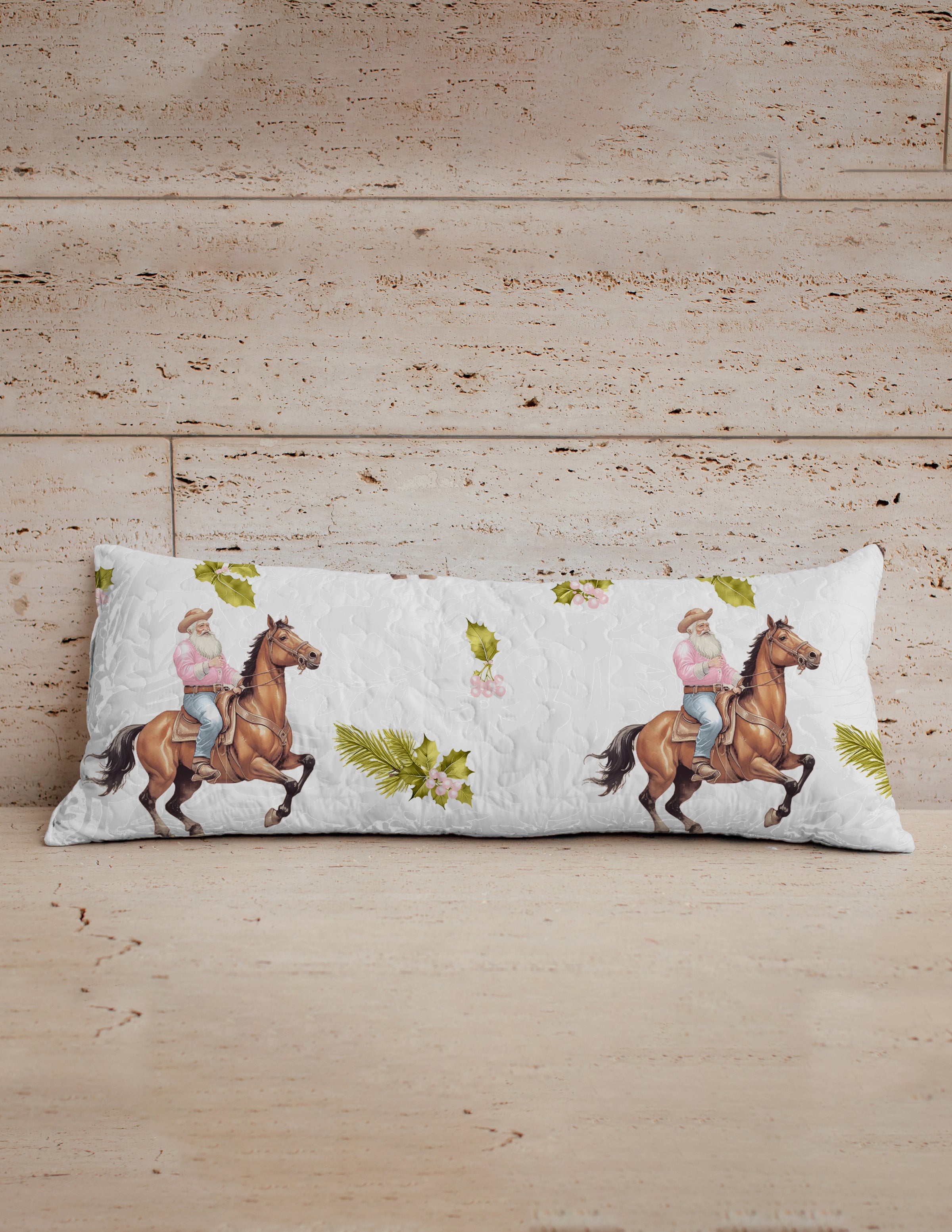 Cowboy Christmas White Quilted Oblong 14" x33" Pillow