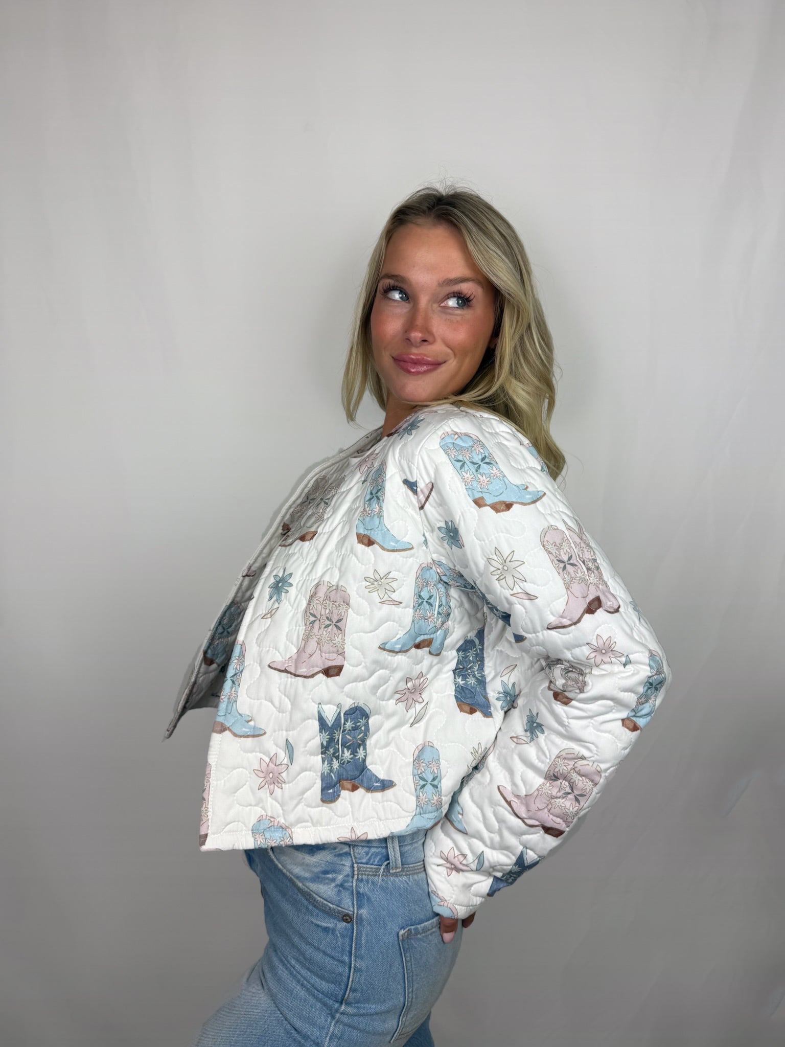 Daisy Boots Pastel Cropped Quilted Jacket