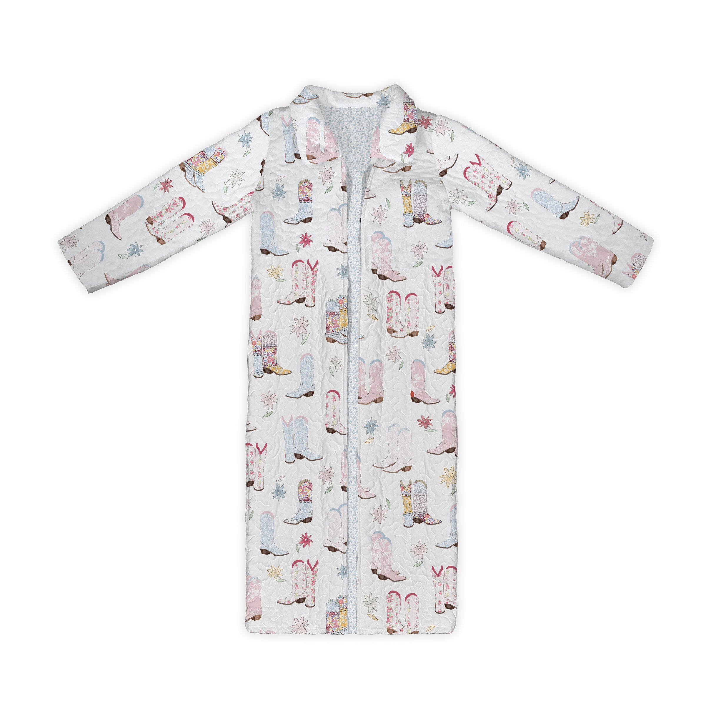 Step into effortless style with our Ida Mae Quilted Maxi Coat. Designed for both comfort and elegance, these dusters are the perfect layering piece for any season. Made in Texas with meticulous attention to detail, our dusters are machine washable, ensuring easy care and lasting quality. Whether you're dressing up for a night out or keeping it casual, these dusters are a wardrobe essential. Explore our collection now and add a touch of Texas charm to your wardrobe.