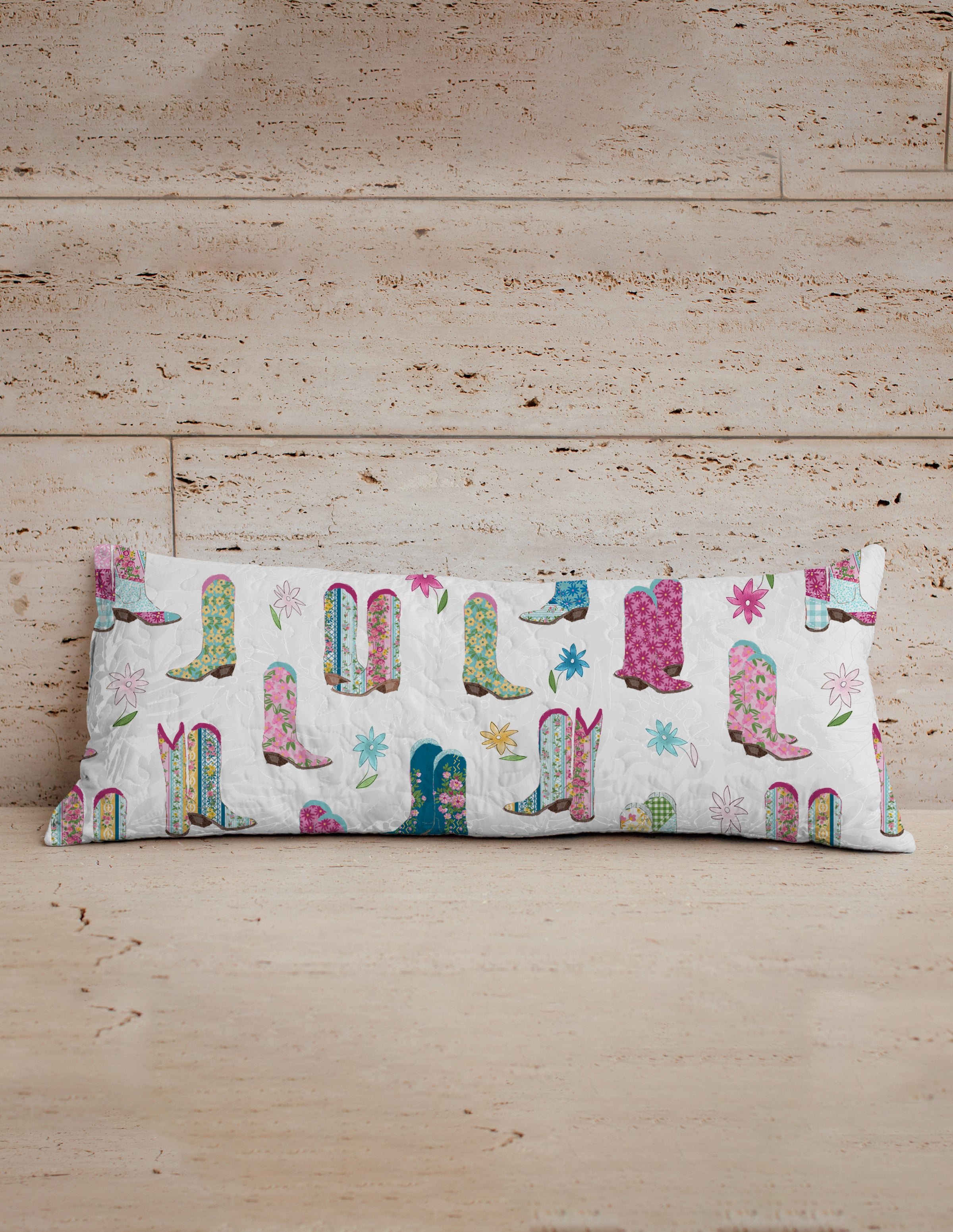 Daisy Boots Patchwork Jewels Quilted Oblong 14" x33" Pillow