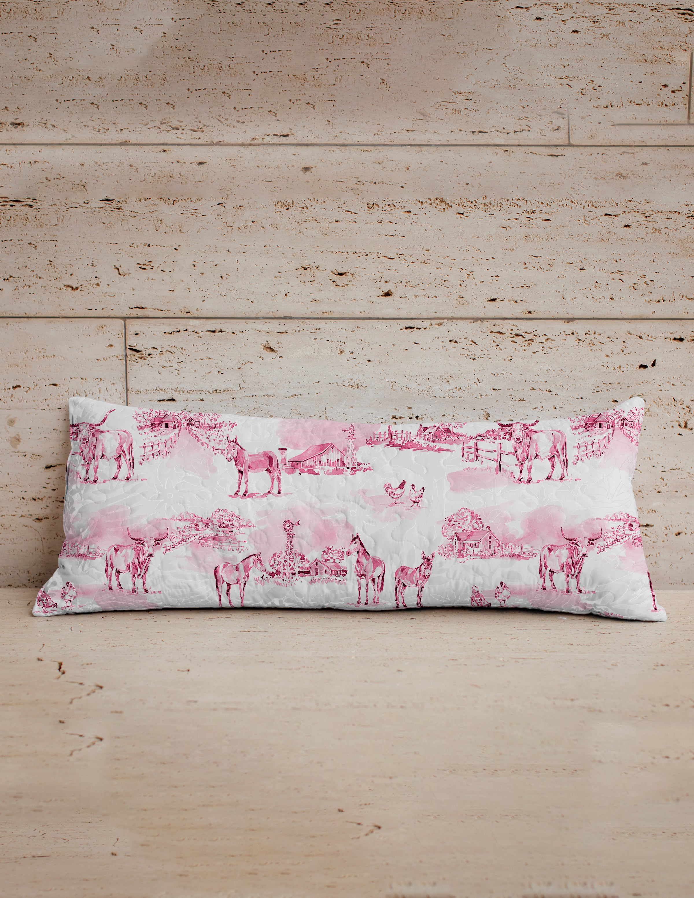 Donkey Toile Fuchsia Quilted Oblong 14"x33" Pillow