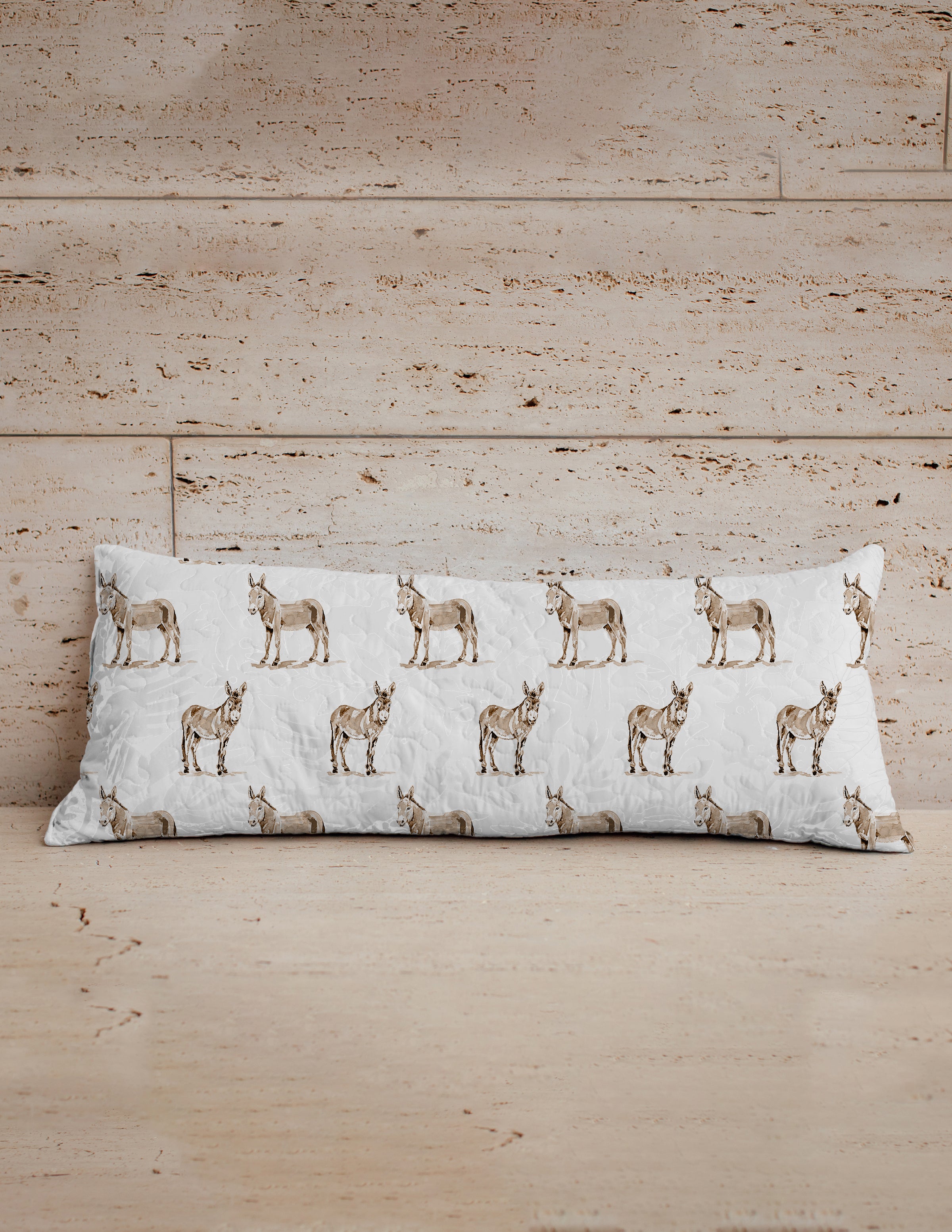 Donkey Icon Brown Quilted Oblong 14" x33" Pillow