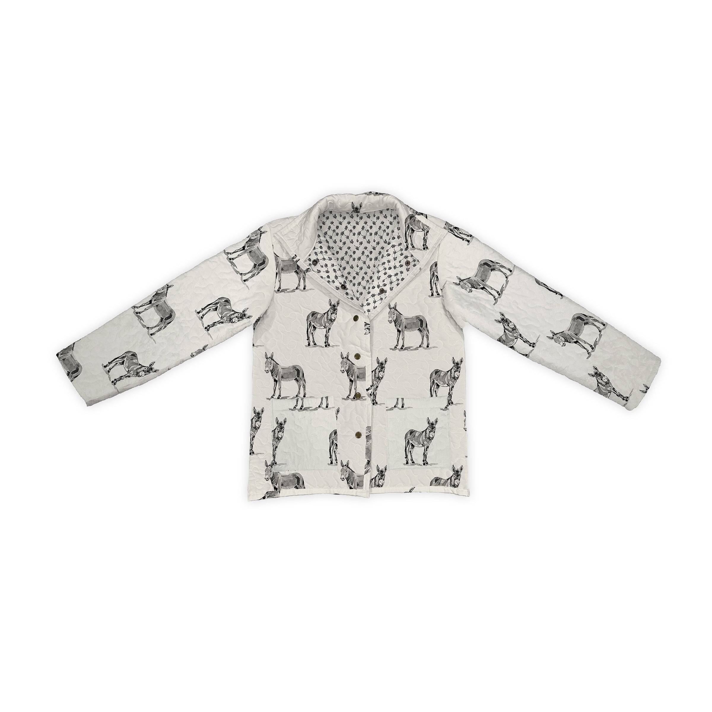Donkey Icon Linen / Black Quilted Snap Jacket
