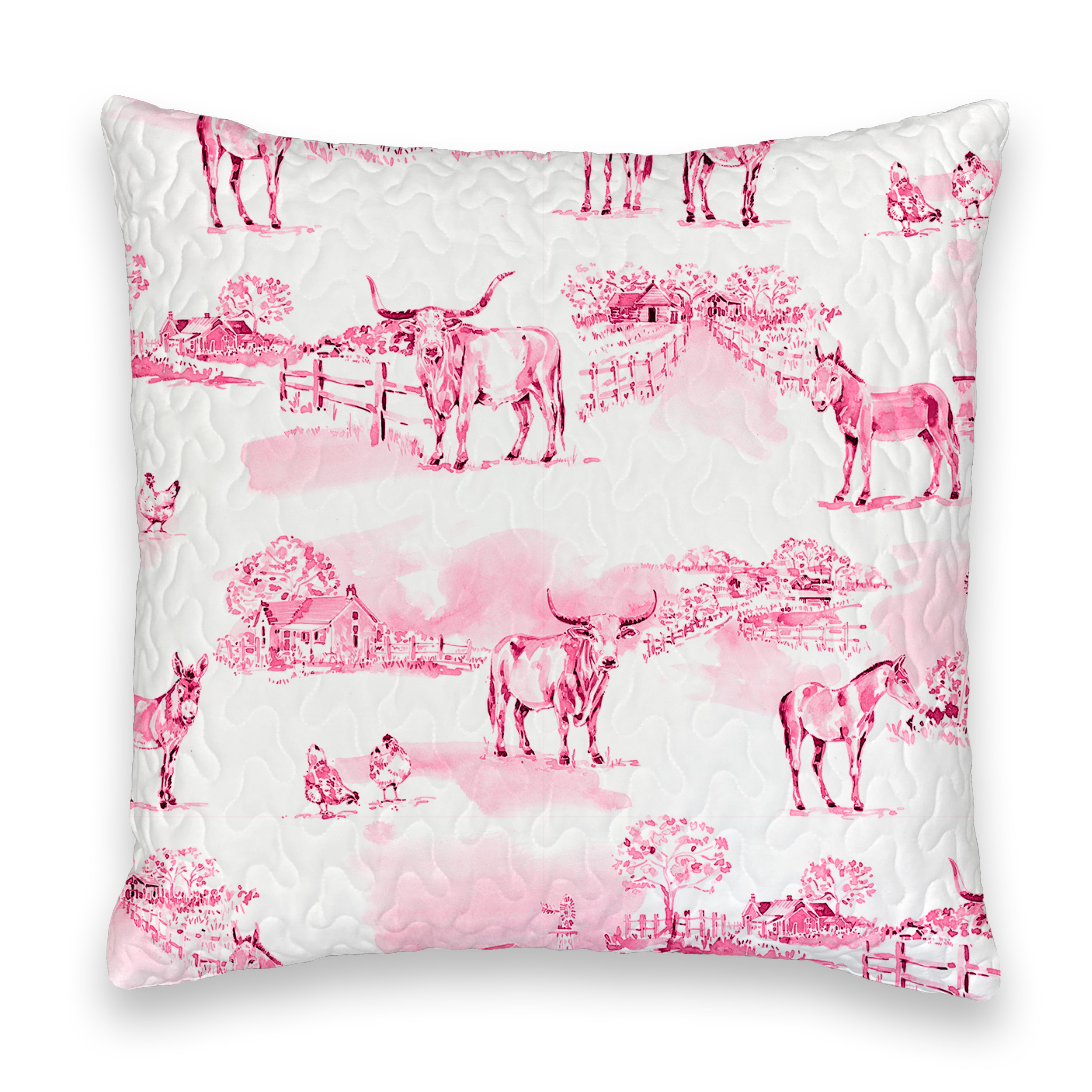 Donkey Toile Fuchsia Quilted 20" Pillow
