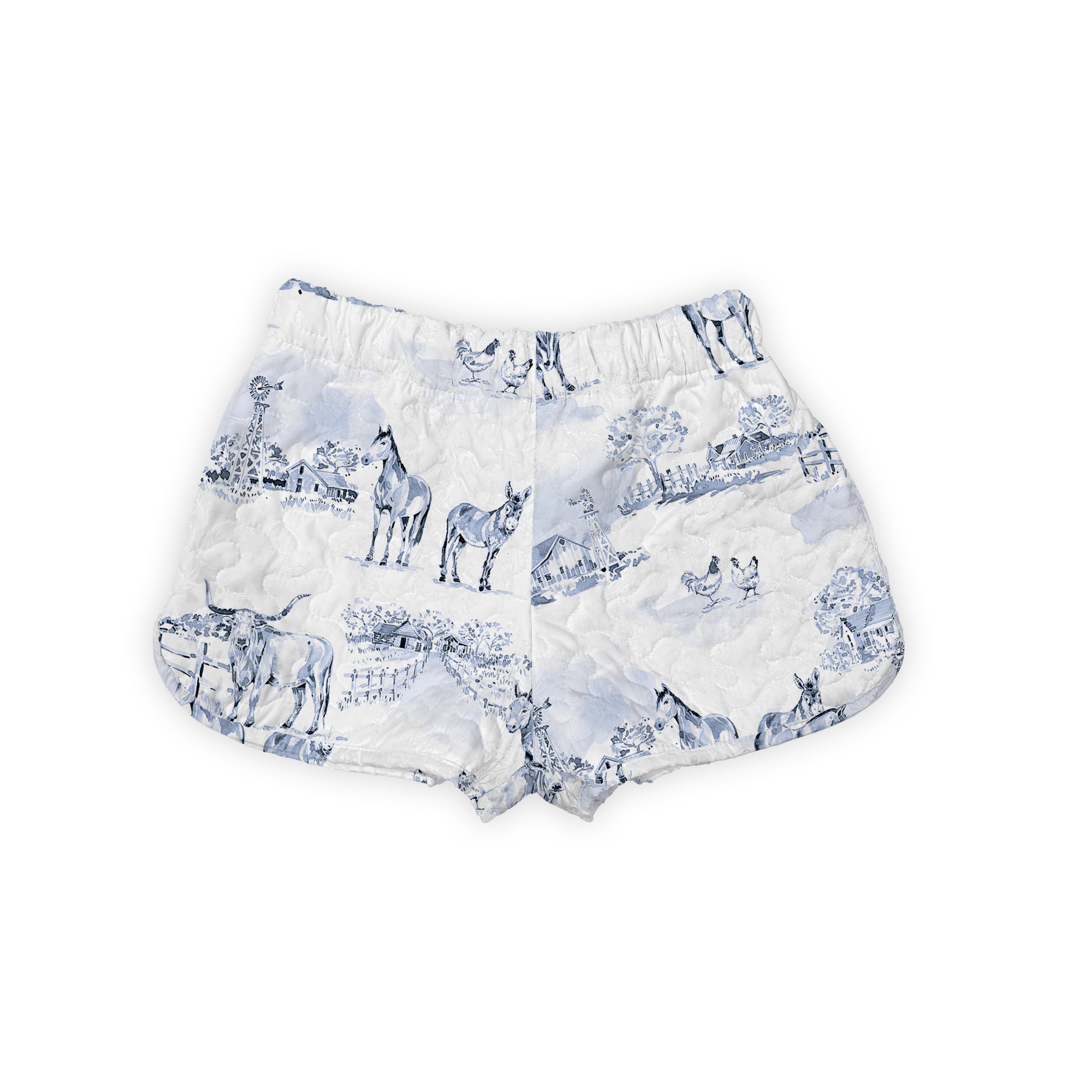 Donkey Toile Blue Quilted Scallop Shorts *Web Exclusive*