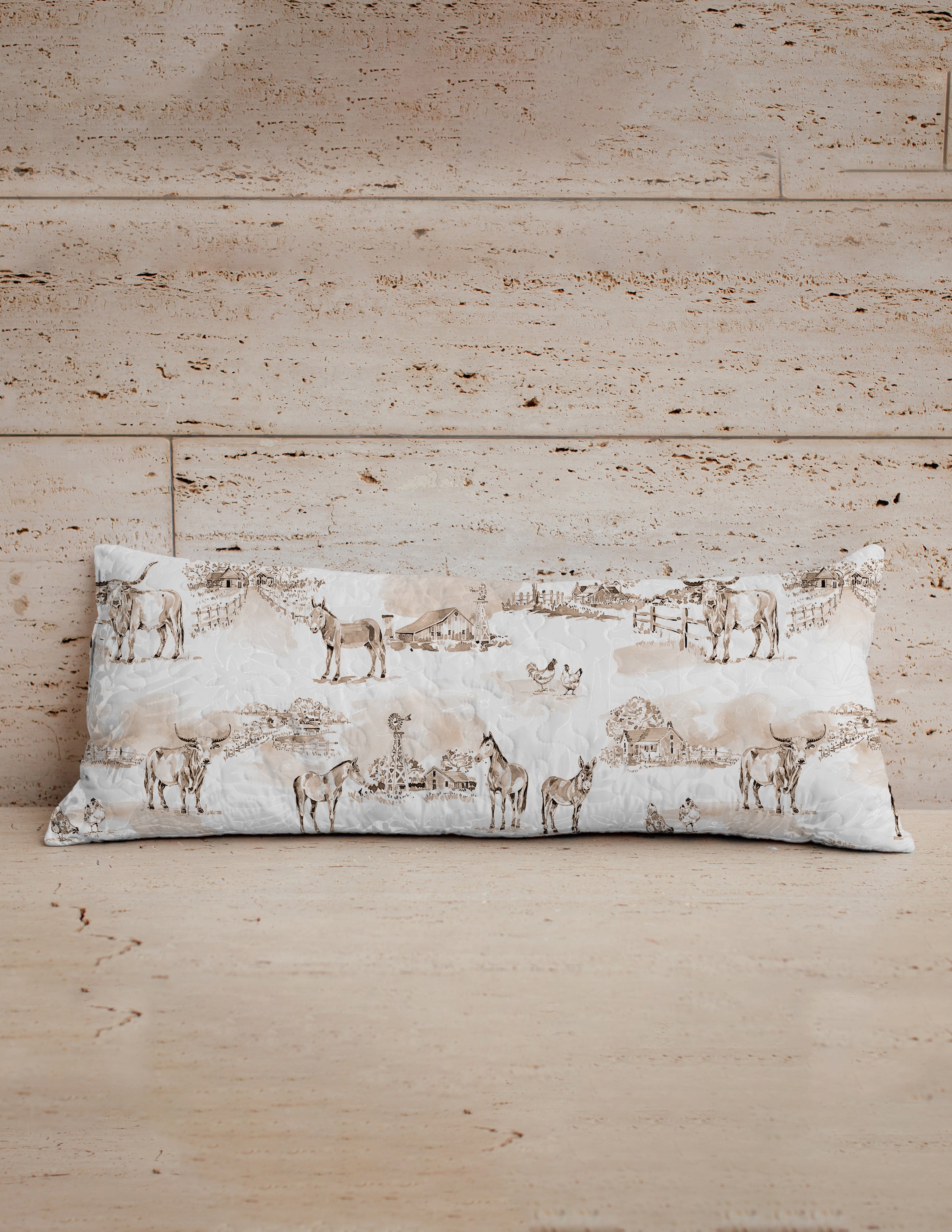 Donkey Toile Brown Quilted Oblong 14" x33" Pillow