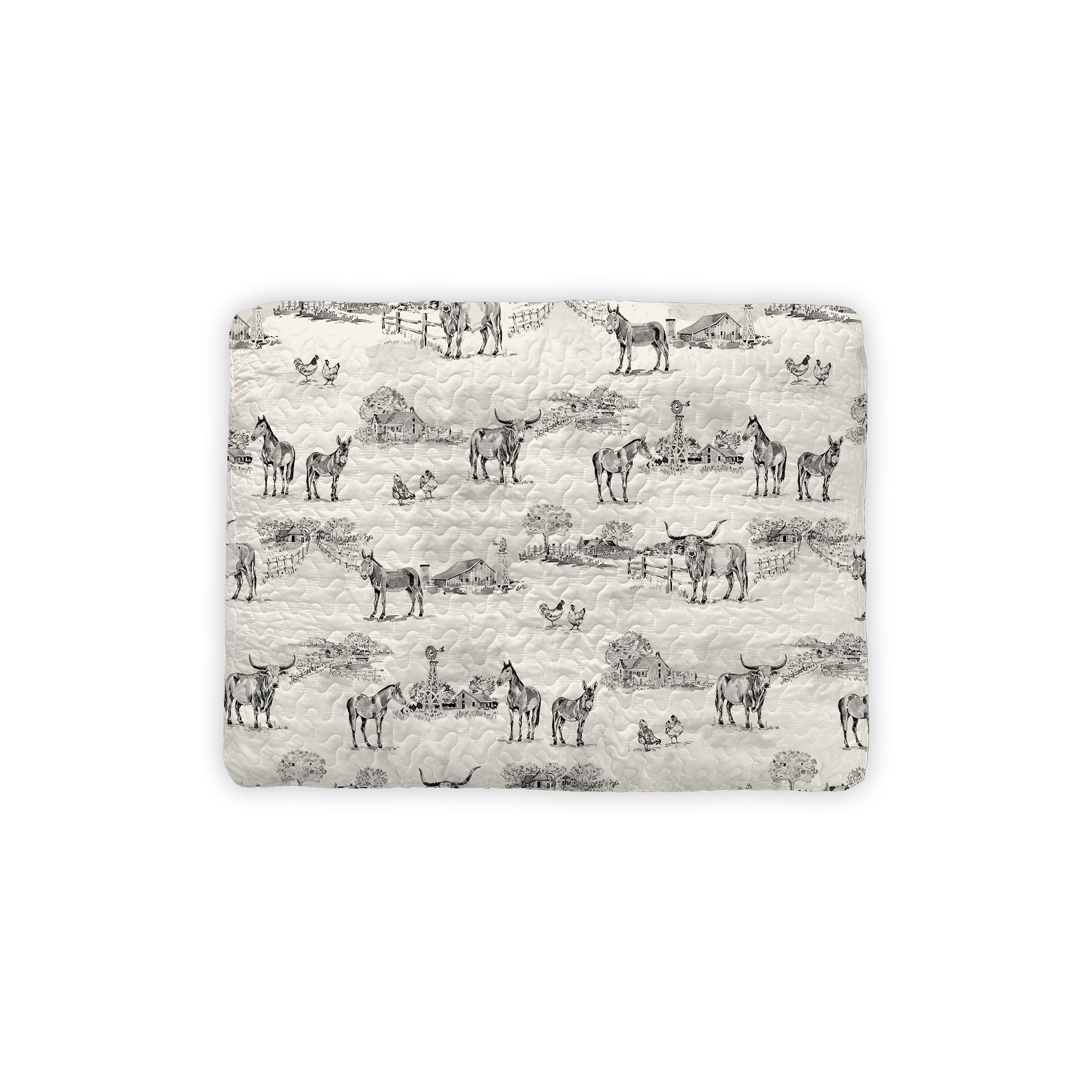 Upgrade your pet's comfort with our Donkey Toile Quilted Pet Bed, where coziness meets practicality. Thoughtfully designed to provide a plush resting place for your furry friend, this bed combines classic quilting with contemporary style. Its generous size ensures ample space for your pet to relax, while a range of rich colors and chic patterns complements any home decor. Whether in the living room or bedroom, this versatile pet bed is the ideal retreat. Handcrafted in Texas with care and durable materials, it promises lasting comfort and timeless charm for your beloved pet.