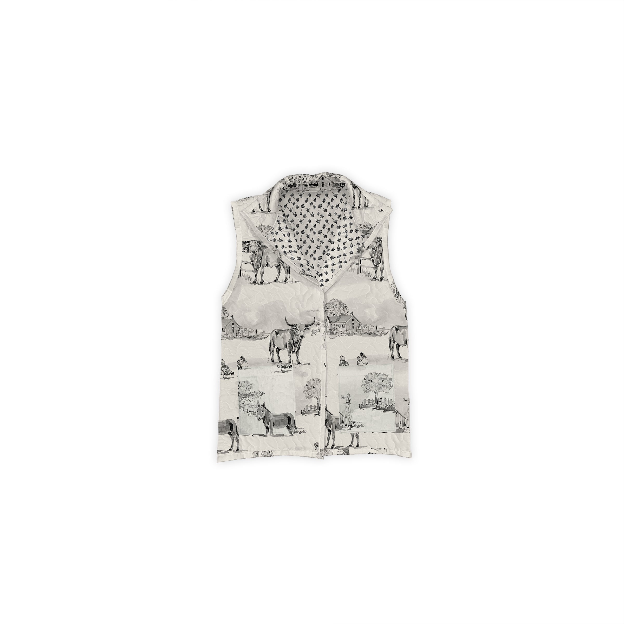 Donkey Toile Linen / Black Quilted Ruby Vest