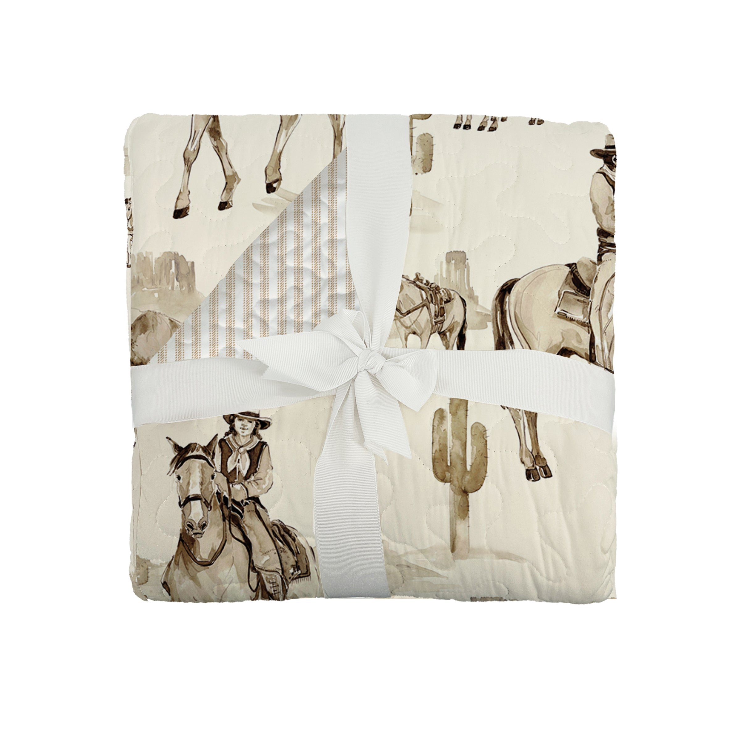 - Sandy beige background with a brown Desert Cowboy Motif.