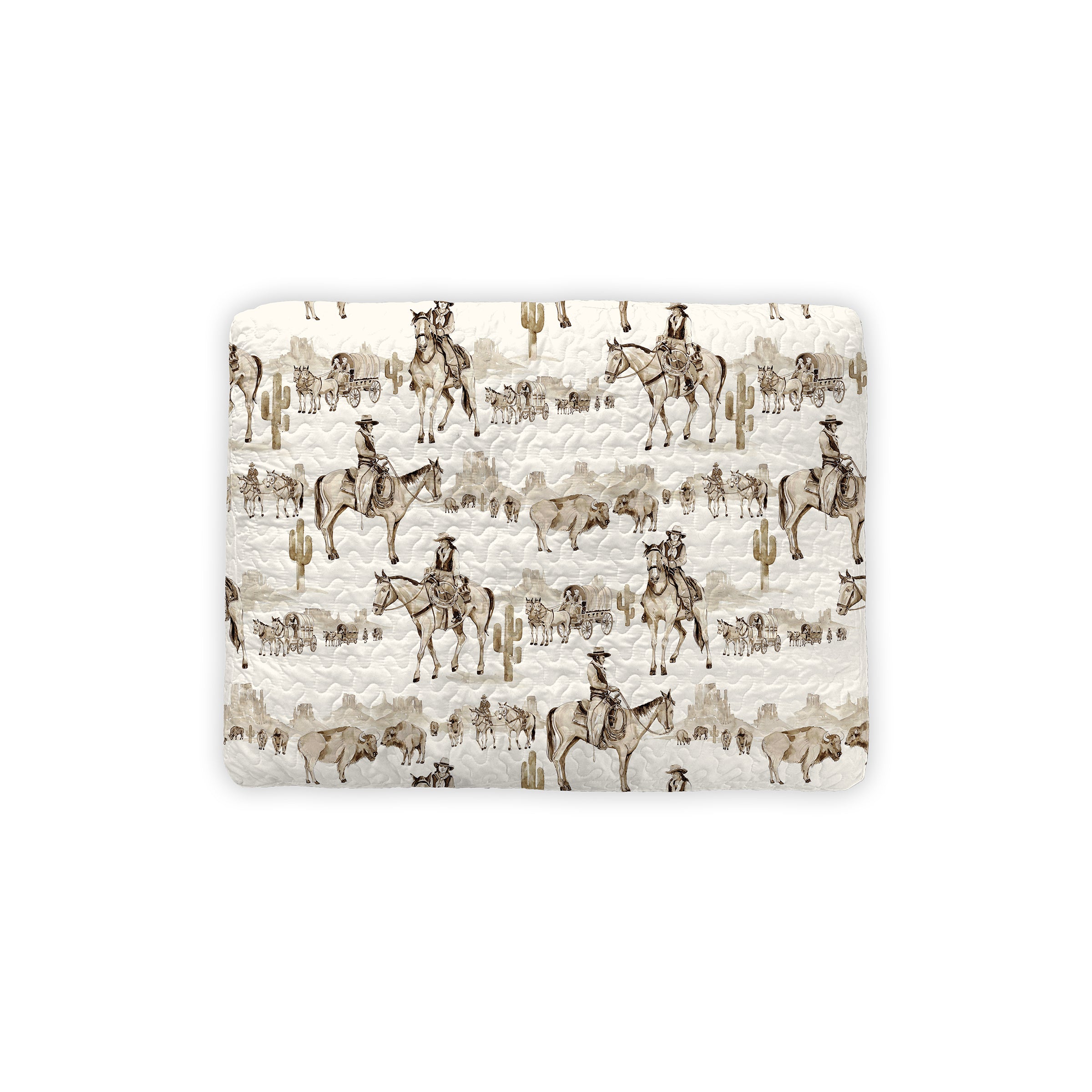 - Sandy beige background with brown Desert Cowboy Motif.