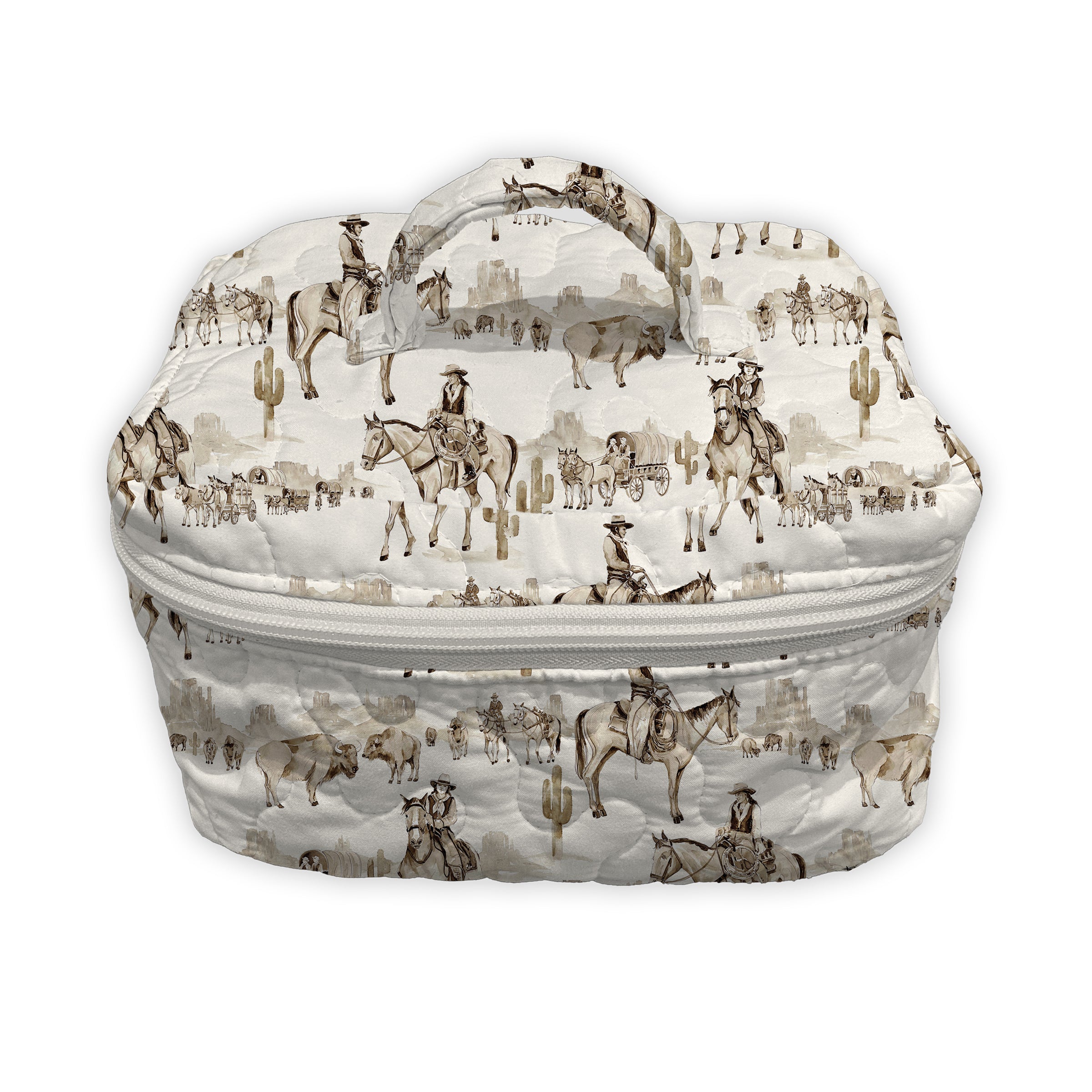 The Elise Trail Brown Quilted Travel Case is one of those pieces you’ll keep for years, the kind your grandma would’ve packed for a weekend away and still have sitting pretty on her vanity. Made to travel gracefully, it keeps your makeup and little necessities tucked neatly in one place, so you’re never digging or rushing. The soft quilted chambray feels timeless, like something stitched with care, and it carries a touch of that Thunderbird heritage with every mile. Practical, pretty, and made to last, just the way things ought to be. Machine washable, too, so you don’t have to fuss none, just a little care, and it’ll last you for years.