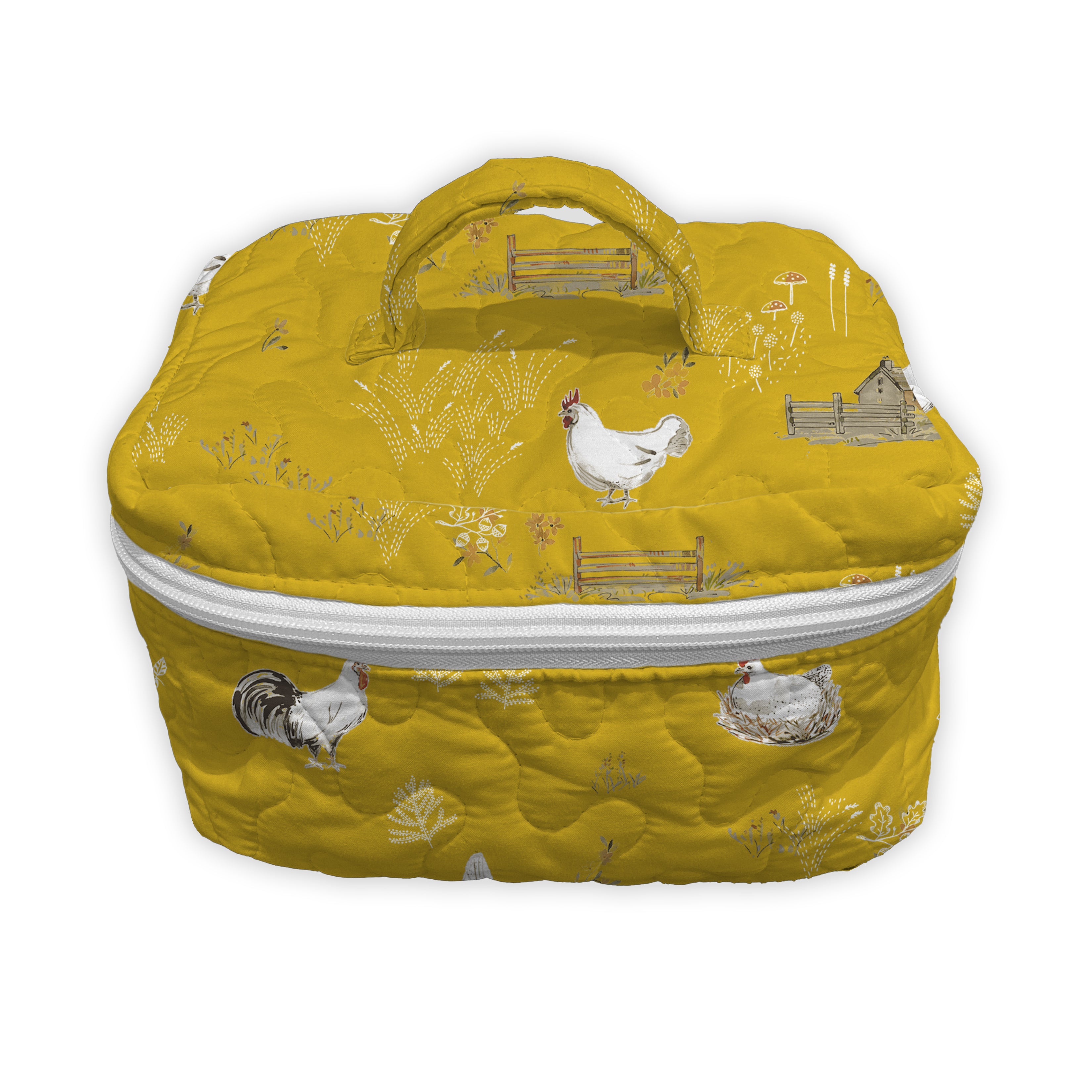 The Farmstead Mustard Quilted Travel Case is functionally and thoughtfully designed to keep your essentials organized on the go. This travel bag has a soft quilted exterior, a secure zip closure, and a convenient top handle, it’s ideal for storing makeup, toiletries, tech accessories, or anything you need within easy reach. Machine washable, too, so you don’t have to fuss none, just a little care, and it’ll last you for years.