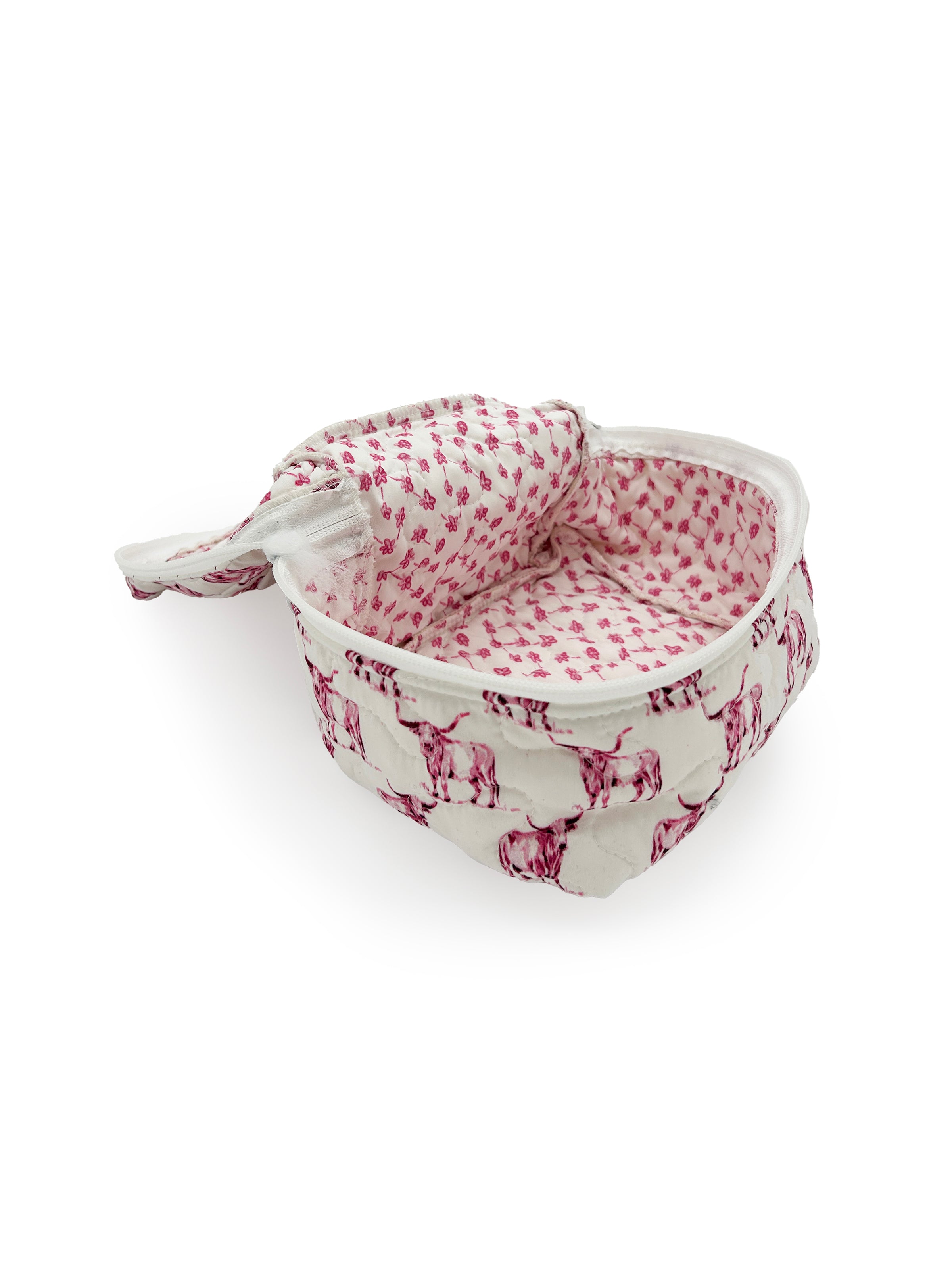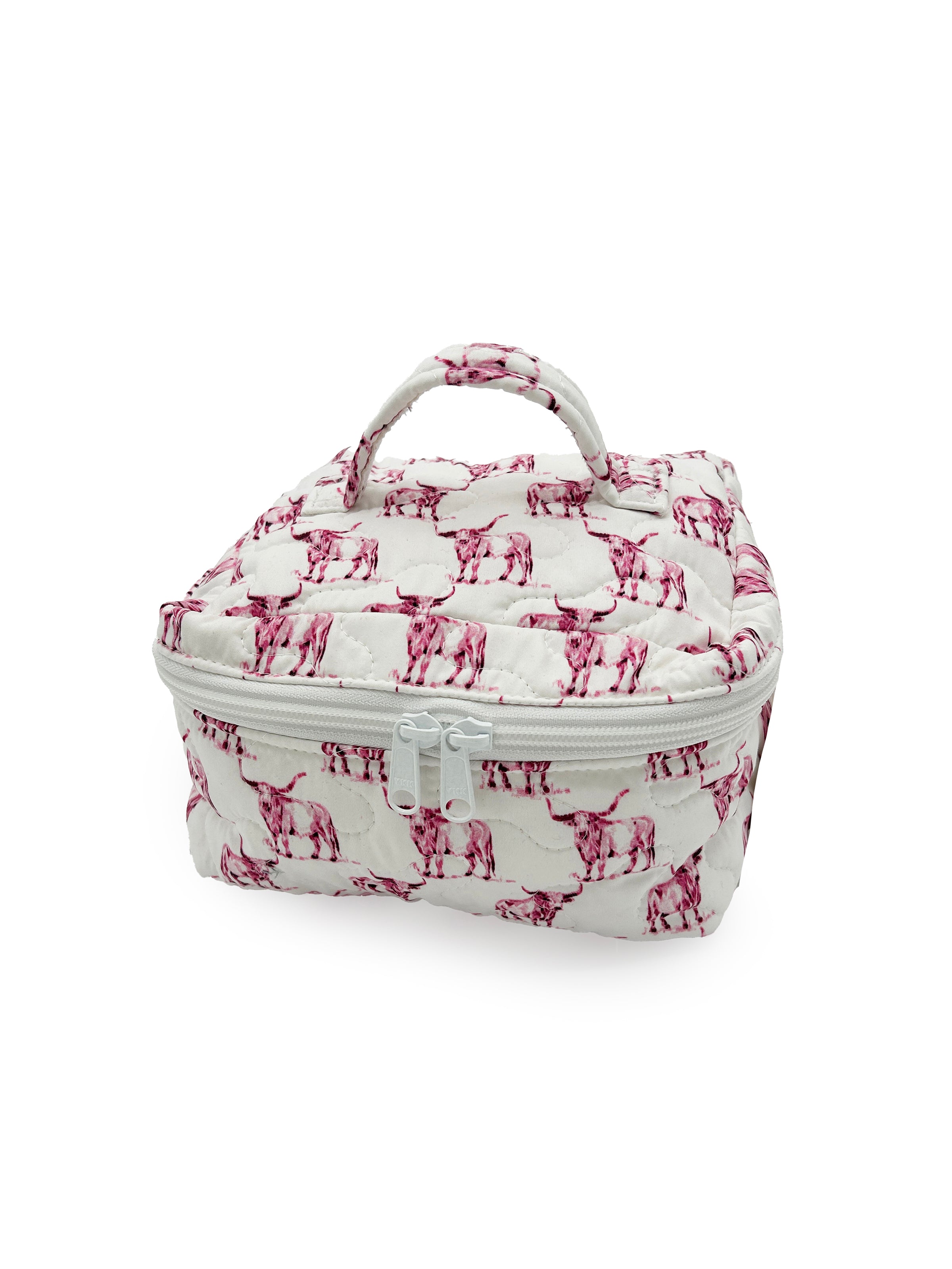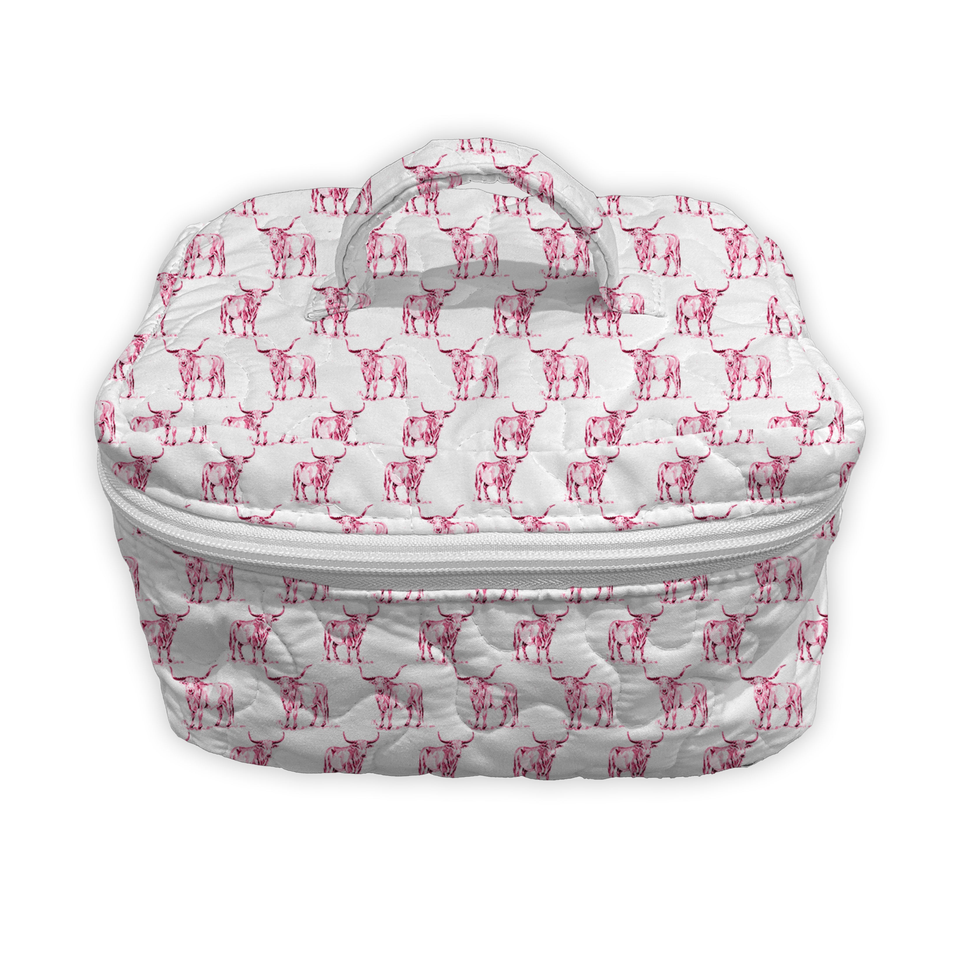 The Longhorn Icon Fuchsia Quilted Travel Case is functionally and thoughtfully designed to keep your essentials organized on the go. This travel bag has a soft quilted exterior, a secure zip closure, and a convenient top handle, it’s ideal for storing makeup, toiletries, tech accessories, or anything you need within easy reach. Machine washable, too, so you don’t have to fuss none, just a little care, and it’ll last you for years.