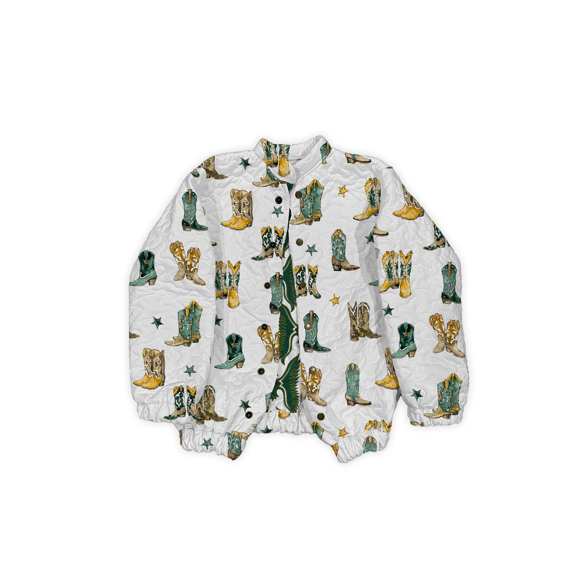 Game Day Green and Gold Thunderbird Boots Quilted Bomber Jacket *Web Exclusive*
