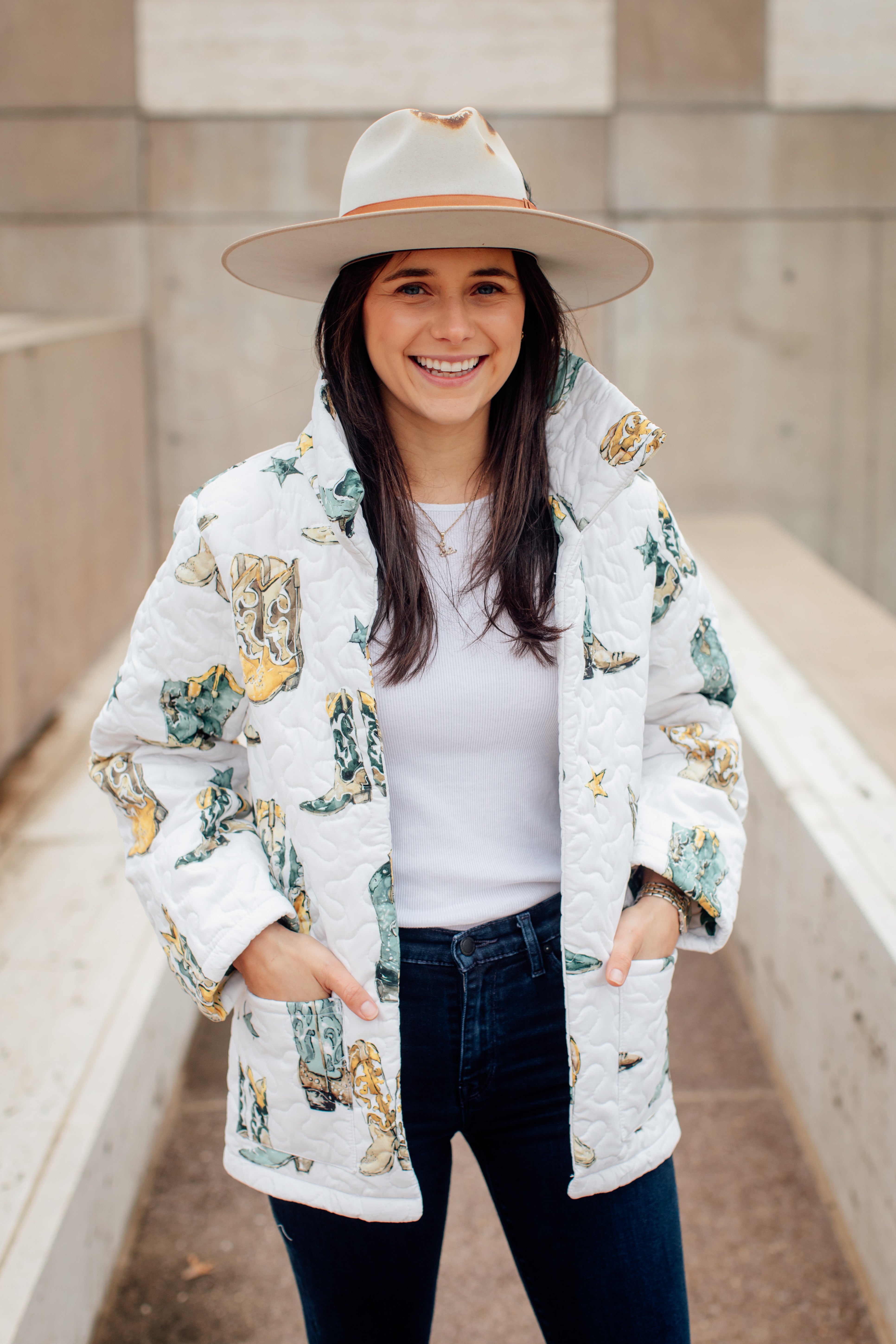 Our Quilted jackets are Comfy and cute! They pair just as well with a dress as it does with jeans or a pair of shorts.