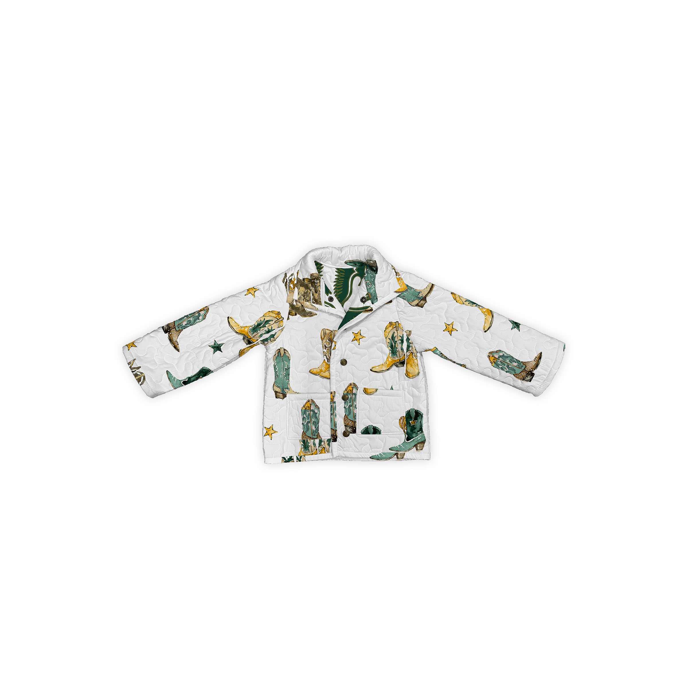 Game Day Green and Gold Thunderbird Boots Youth Quilted Snap Jacket
