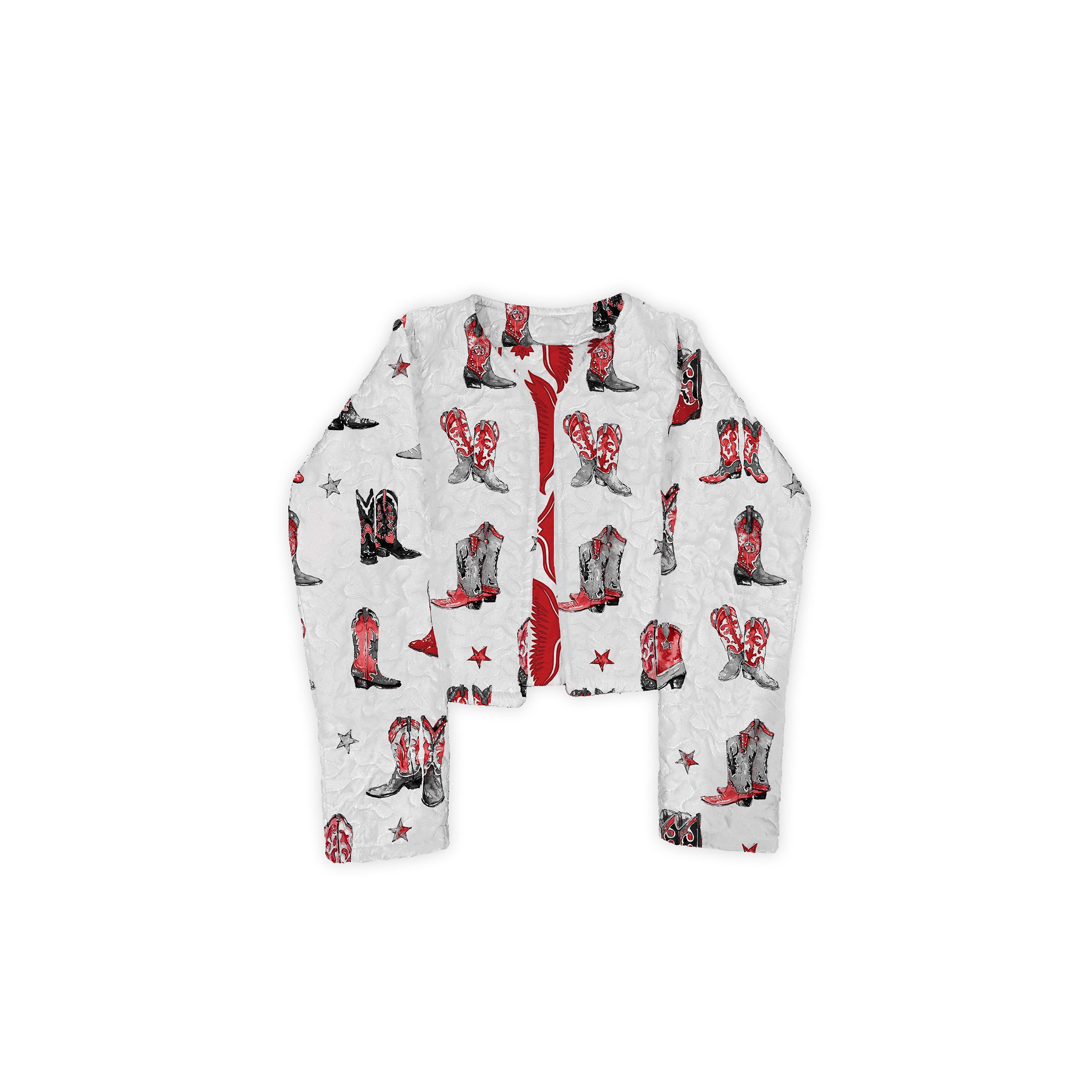 Game Day Red and Black Thunderbird Boots Cropped Quilted Jacket