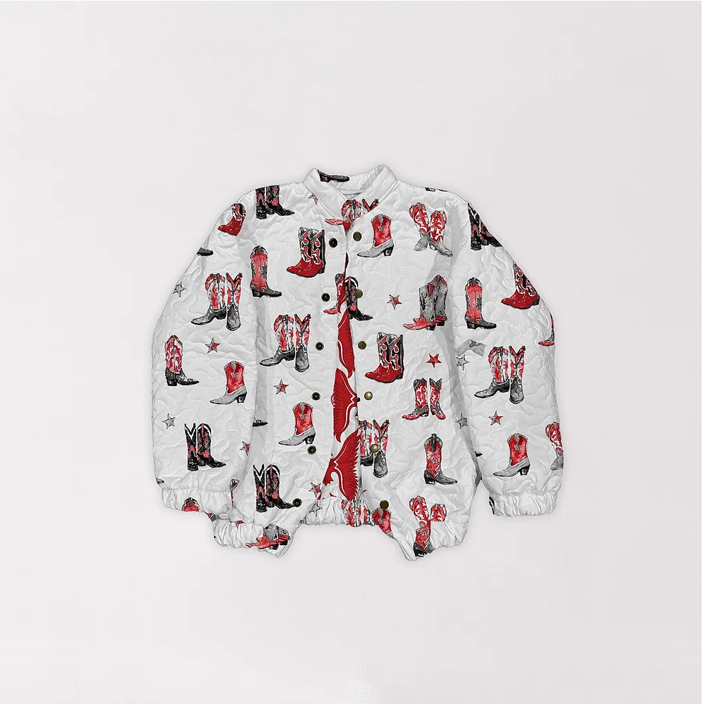 Game Day Red and Black Thunderbird Boots Quilted Bomber Jacket *Web Exclusive*