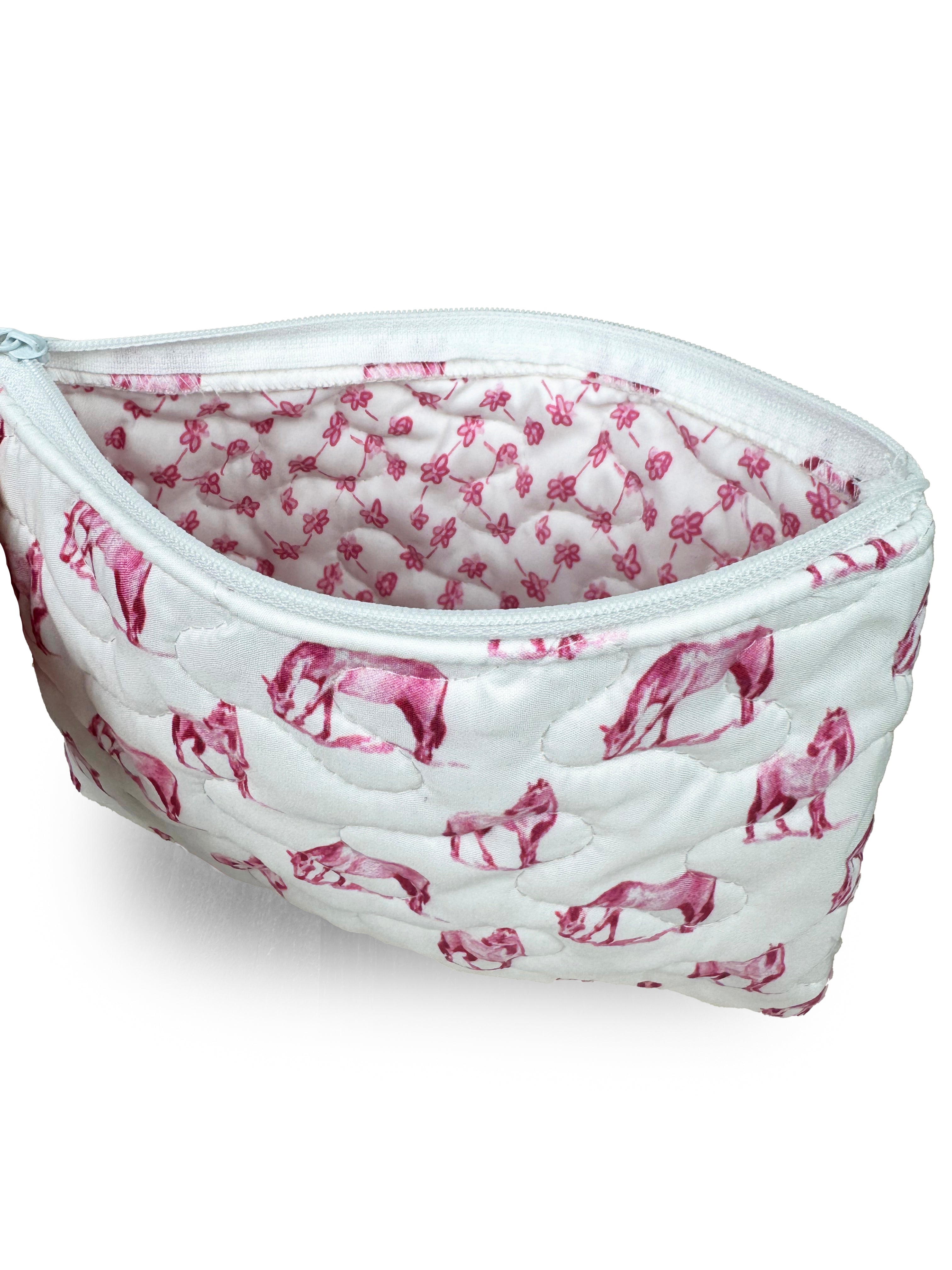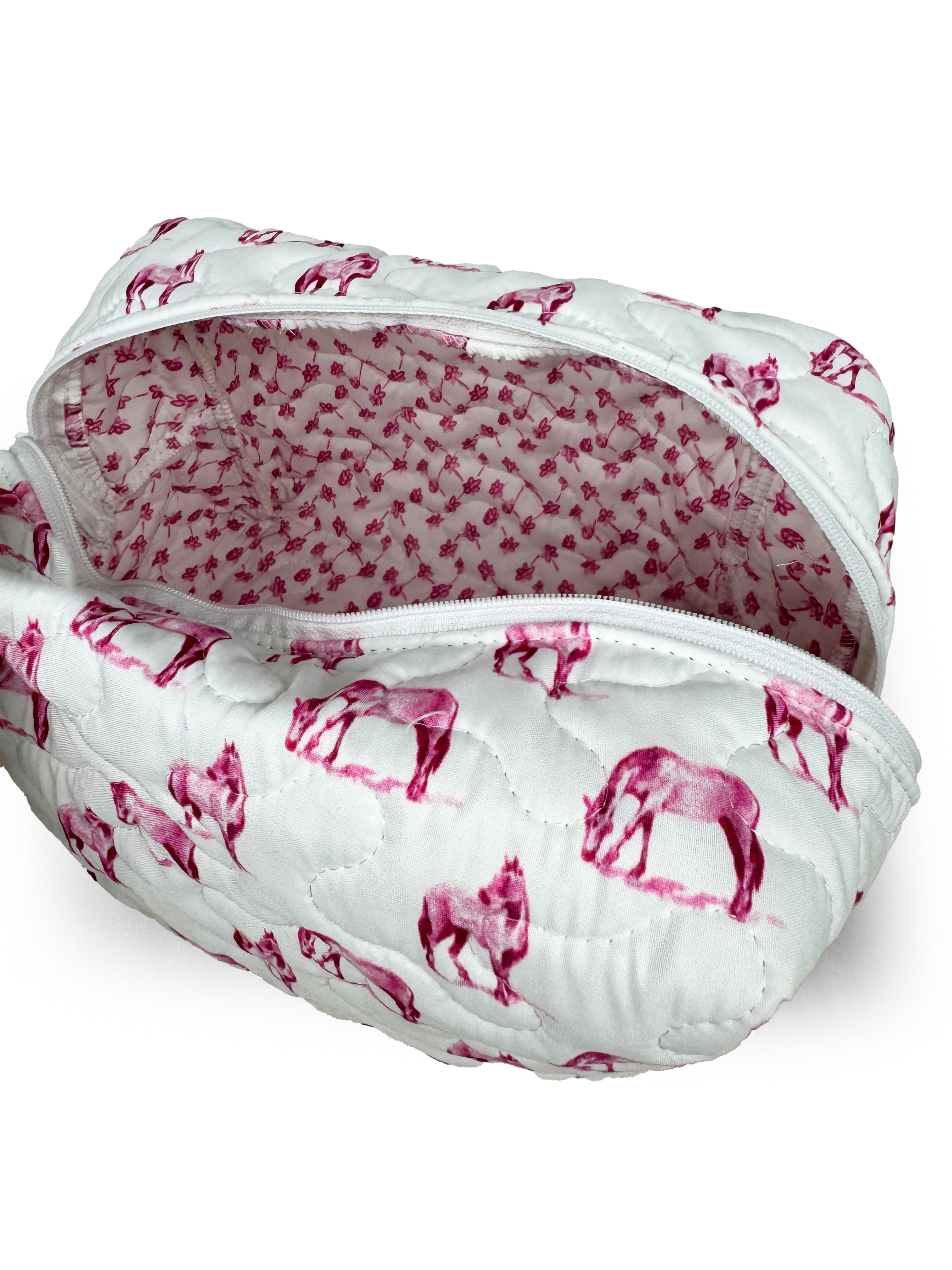 Horse Icon Fuchsia Quilted Makeup Bag